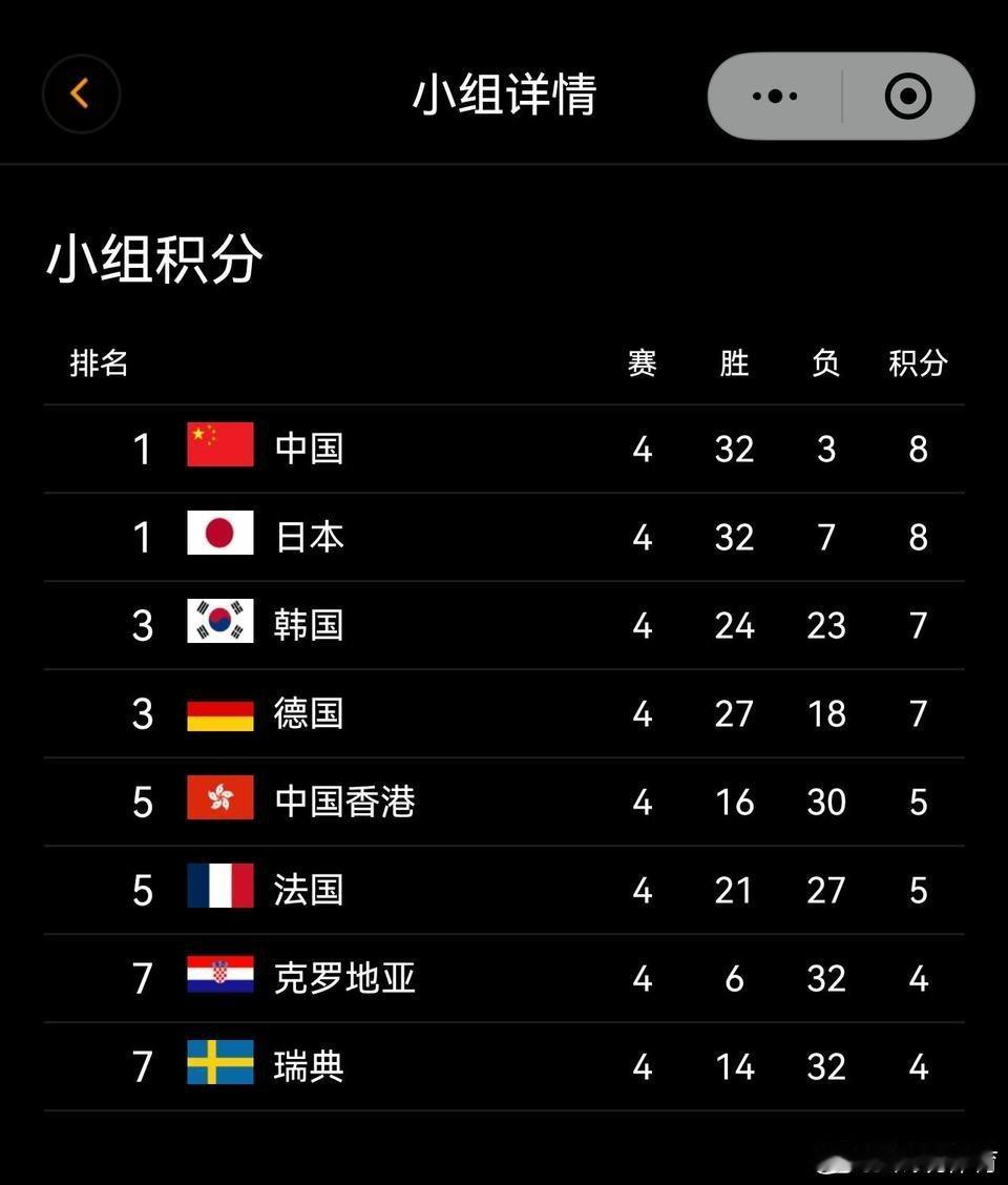 算了一下分,忽然发现明天日韩之战还挺关键的首先不出意外国乒应该是14分以第一名晋级的。然后假如明天日韩大战日本赢了,那么日本的分数升到10分,即便后面两场(对国乒和法乒)全输了也有12分。也就是说明天赢了韩国,日本就锁定第二的席位了(哪怕周六的比赛全部输掉),韩国德国最多能做到跟他同分,但鉴于之前的比赛都输给日本了,所以即便同分顺位也排在日本后面。这意味着明晚日本一旦赢了韩国,他就可以直接以逸待劳为周日的淘汰赛开始准备了。乒出精彩