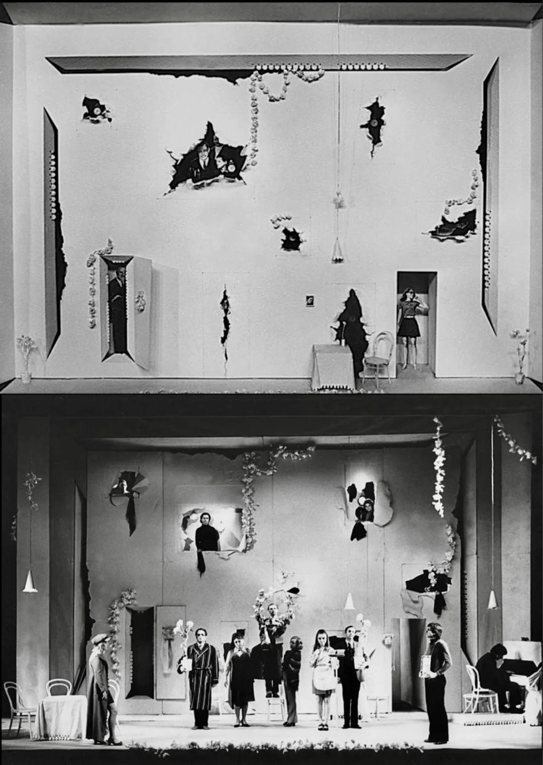 [六R] 1973年在列宁格勒喜剧院的舞台设计作品《关于婚姻的独白》模型、《关于婚姻的独白》剧照