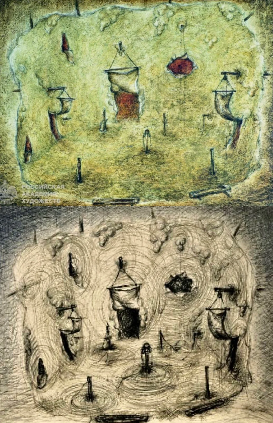 [一R][零R]1968年在列宁格勒国家戏剧院的舞台设计作品《被嘲笑的幸福》“Насмешливое моё счастье”设计图