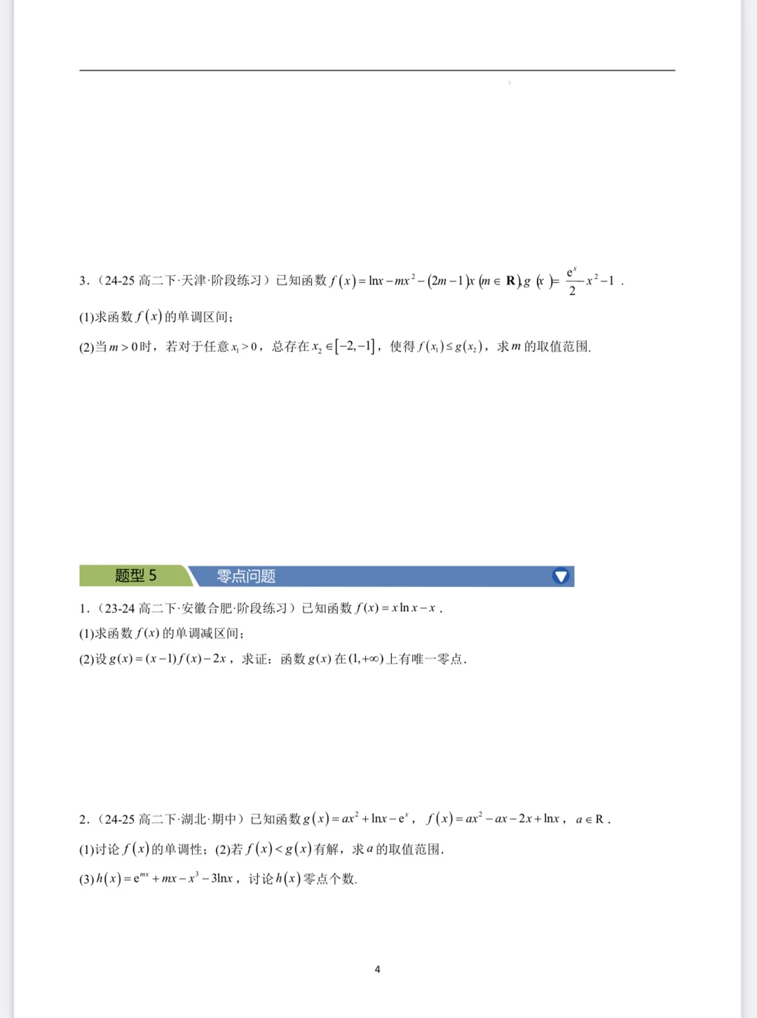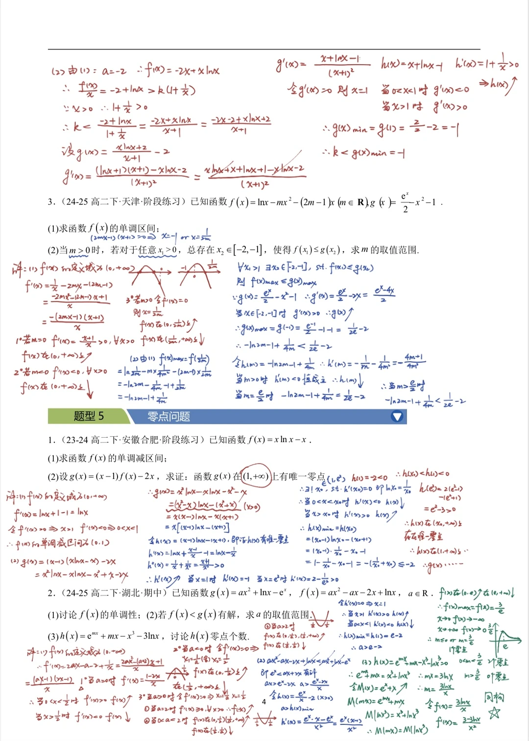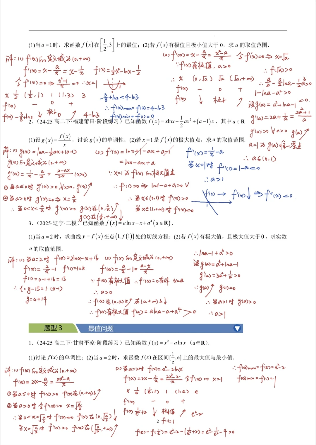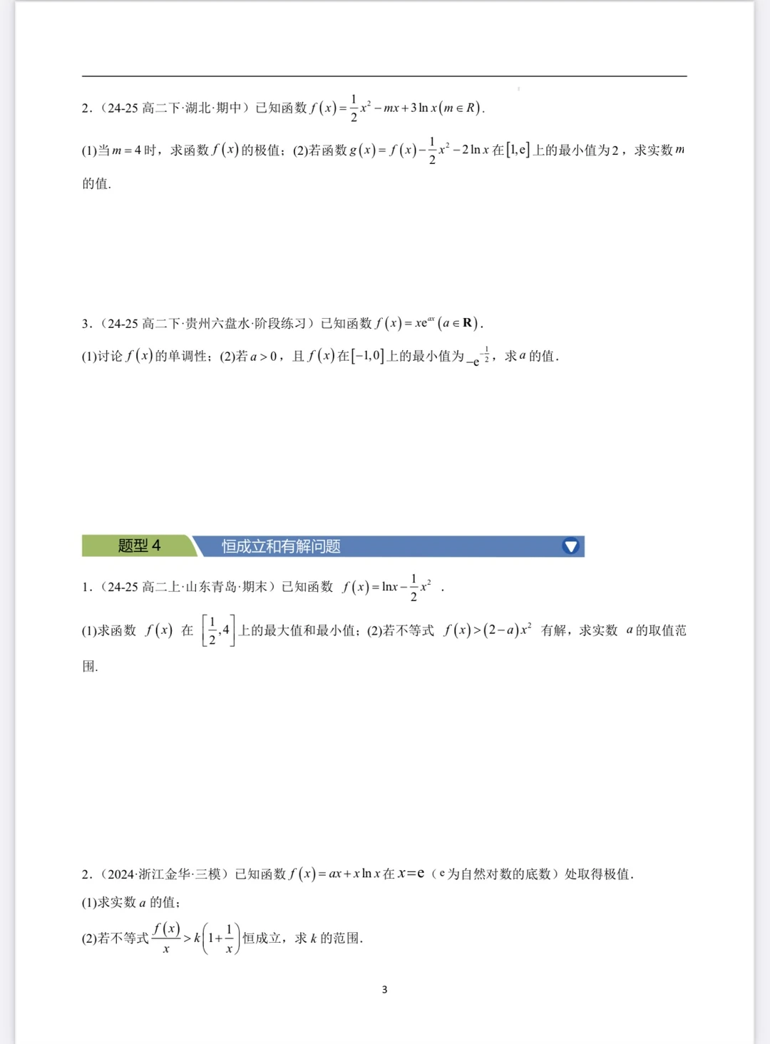 因为本次周考,18题导数题的得分率很低,所以给学生印了这个练习,一是学生做题比较少,对各类题型的思路不够明确,二是他们的书写又乱又差。 这次要求学生每天做3道,熟悉各类题型,重视书写!!!老师做好示范!