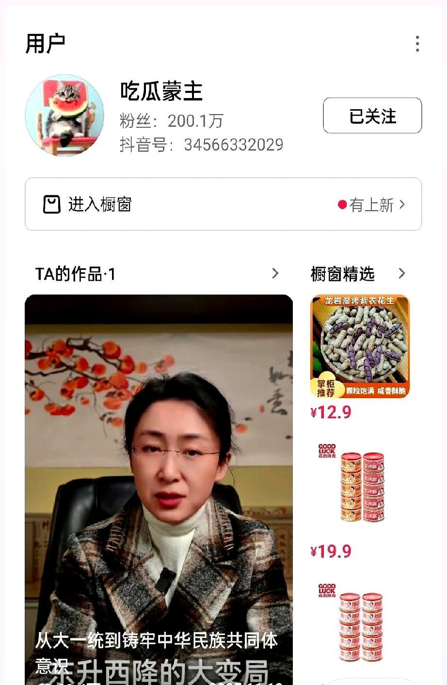 吃瓜蒙主抖音平台的粉丝已经突破200万! 她每天涨粉超几万,在所有自媒体平台排第一,网友关注她是因为认同三观、感受亲和等,最敬佩她的爱国之情和复兴之梦。 这样的博主能火不是巧合,三观正、亲和又爱国,把个人追求和家国情怀结合,肯定会被更多人认可,粉丝还得接着涨。