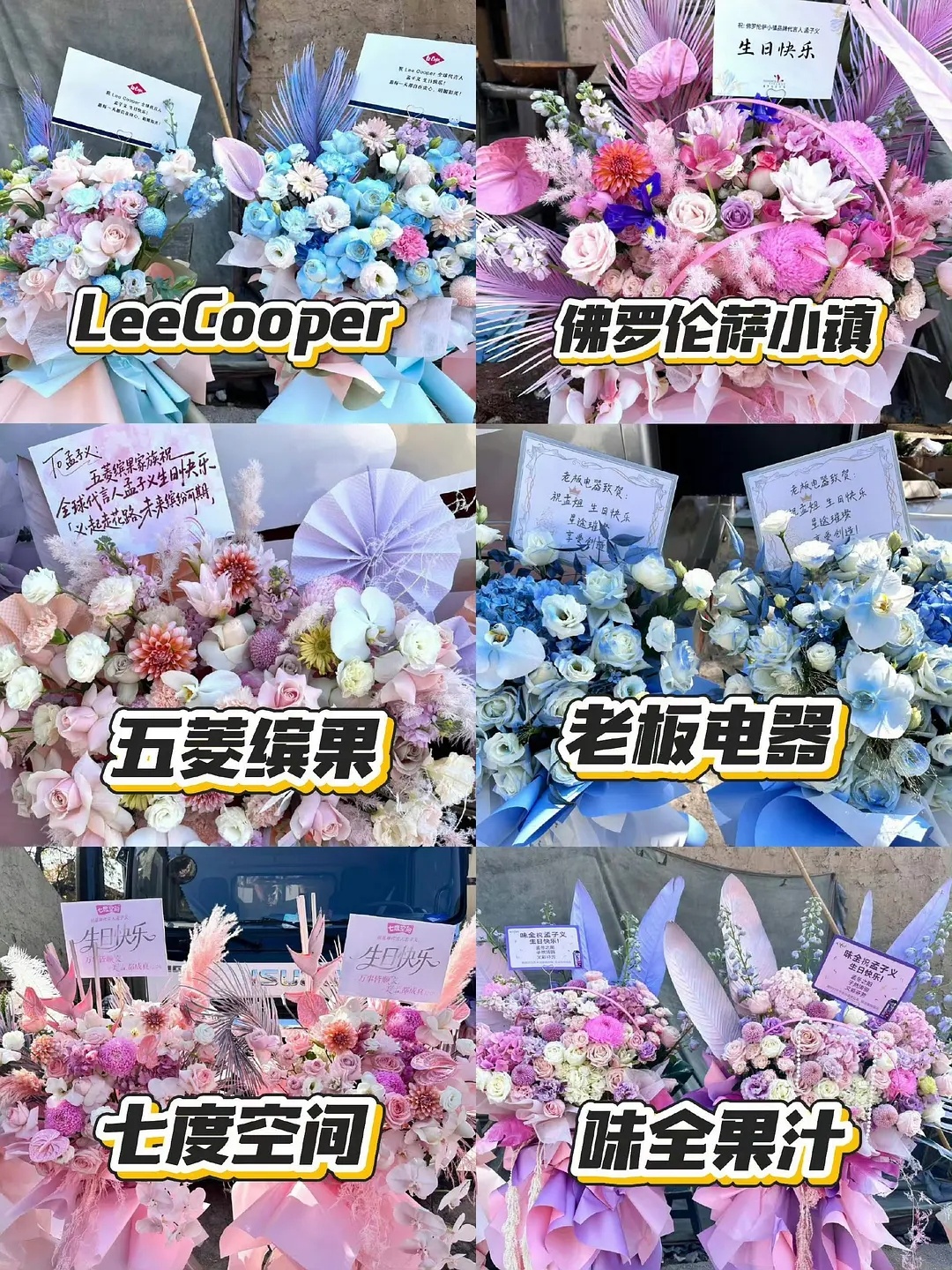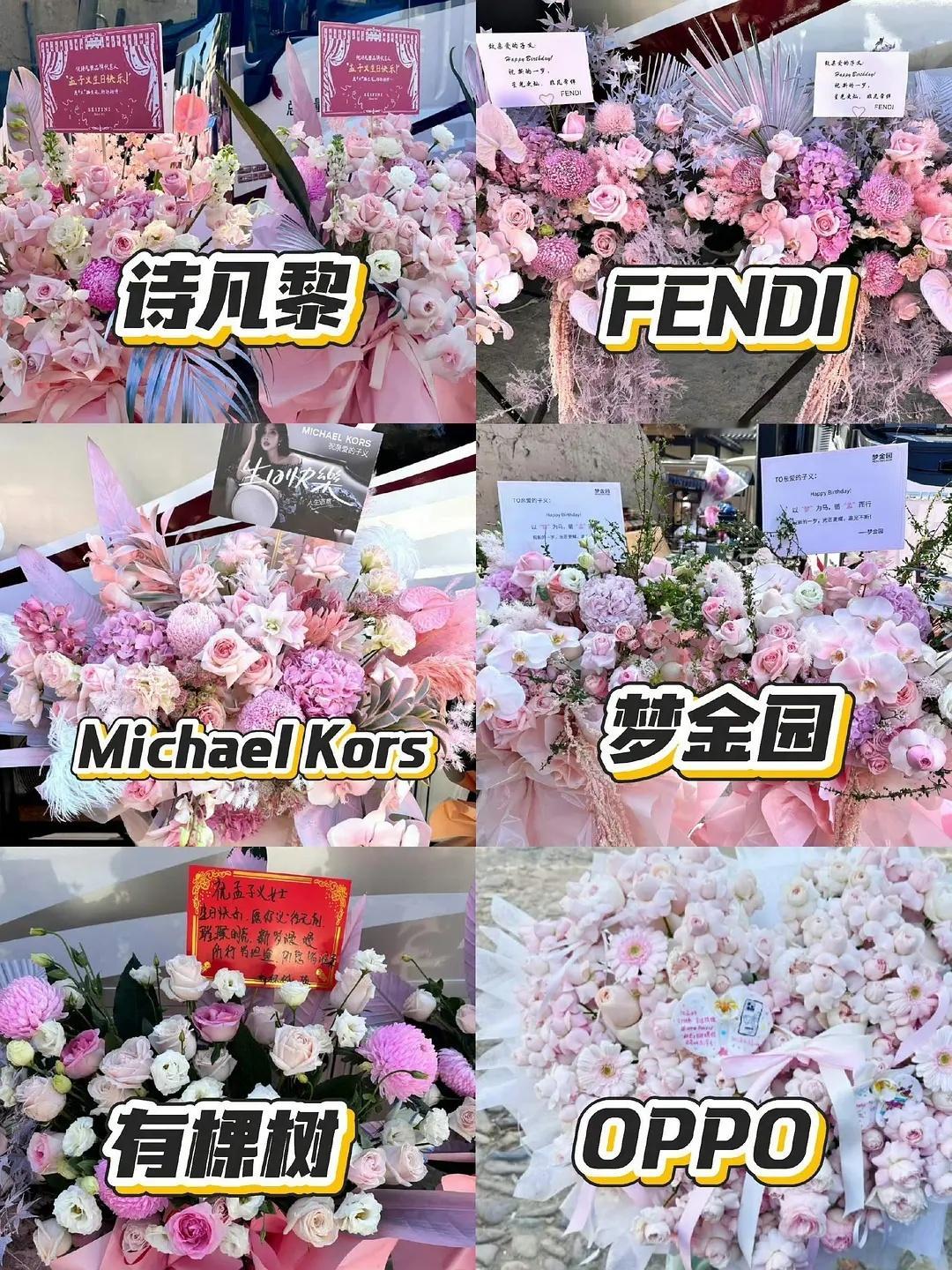各平台、品牌方、剧组给孟子义送的生日花篮🥰WeTV、腾讯综艺、浙江卫视、奔跑吧、桃花坞、FENDI、OPPO、诗凡黎、五菱、老板电器、七都空间、味全、mk、佛罗伦萨、Lee Cooper及各剧组都给孟子义送了生日花篮