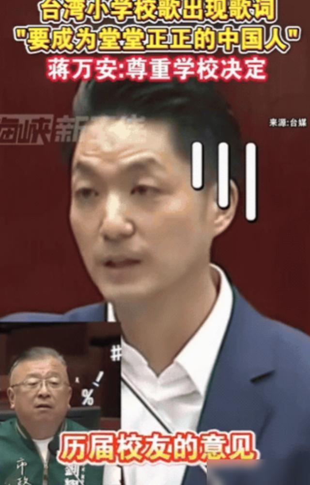 “台独”急眼了,台湾小学校歌歌词中,竟然出现了“要成为堂堂正正的中国人”!民进党籍台北市议员刘耀仁率先发难,质问市长蒋万安。 这事儿可真够讽刺的。一句“堂堂正正的中国人”,居然能让某些人跳脚成这样。校歌歌词而已,又不是什么政治宣言。孩子们唱的是文化认同,是血脉里的根。这有什么好紧张的? 刘耀仁议员在议场上的表现,大家都看到了。咄咄逼人,非要蒋市长表态。好像歌词里带了“中国”二字,就成了什么洪水猛兽。可蒋万安回答得挺明白:校歌是学校自己的事,市府尊重学校自主。这话在理。什么时候连孩子们唱什么歌,都要被拿到议会上审查了? 这事背后不简单。这些年,岛内某些势力拼命搞“去中国化”。改课本,改地名,连历史都想篡改。以为这样就能切断两岸联系?太天真了。文化是刻在骨子里的,哪是改几个字就能抹掉的。 看看现实吧。春节贴春联,中秋吃月饼,清明祭祖先。这些习惯,台湾同胞哪一样放下了?生活里的文化痕迹,比政治口号有力得多。那所小学坚持保留这句歌词,正说明了很多人的真实想法。不是上面喊什么,下面就会跟着信什么。 刘议员这么着急,反而露了怯。说明他们心里虚得很。怕的就是这种自发的认同感。一旦老百姓不再被所谓的“政治正确”束缚,他们那套叙事就站不住脚了。 说到底,两岸同胞血脉相连,这是改变不了的事实。政治人物可以吵吵嚷嚷,但老百姓过日子的方式,对祖先的敬意,对传统文化的传承,这些才是最真实的。一句校歌歌词就急眼,恰恰说明有人害怕这种真实。 文化认同不是靠强迫的,更不是靠禁止就能消除的。越是打压,可能反弹得越厉害。让孩子们堂堂正正地认识自己的文化根源,有什么不好?这本来就是我们共同的宝贵财富。