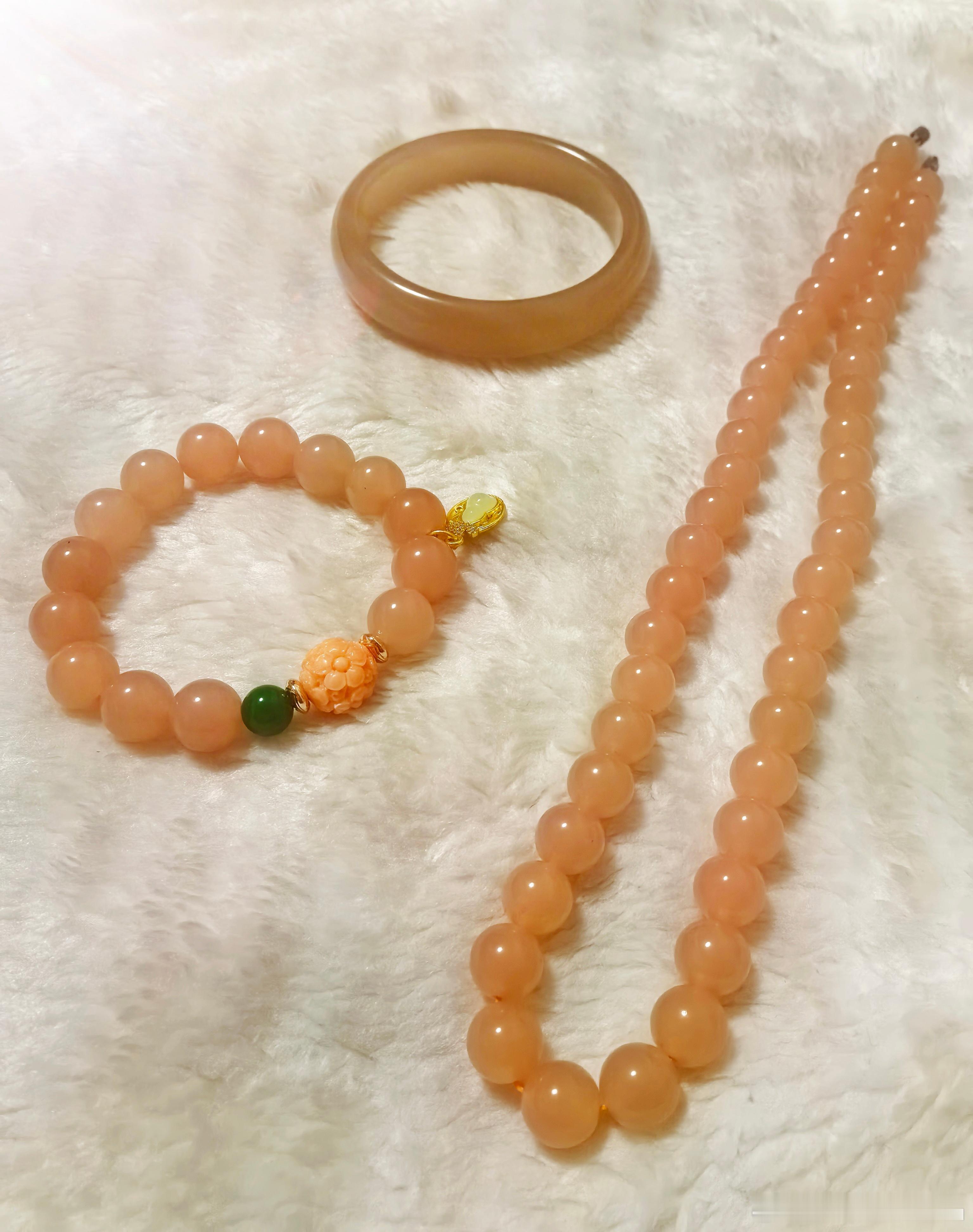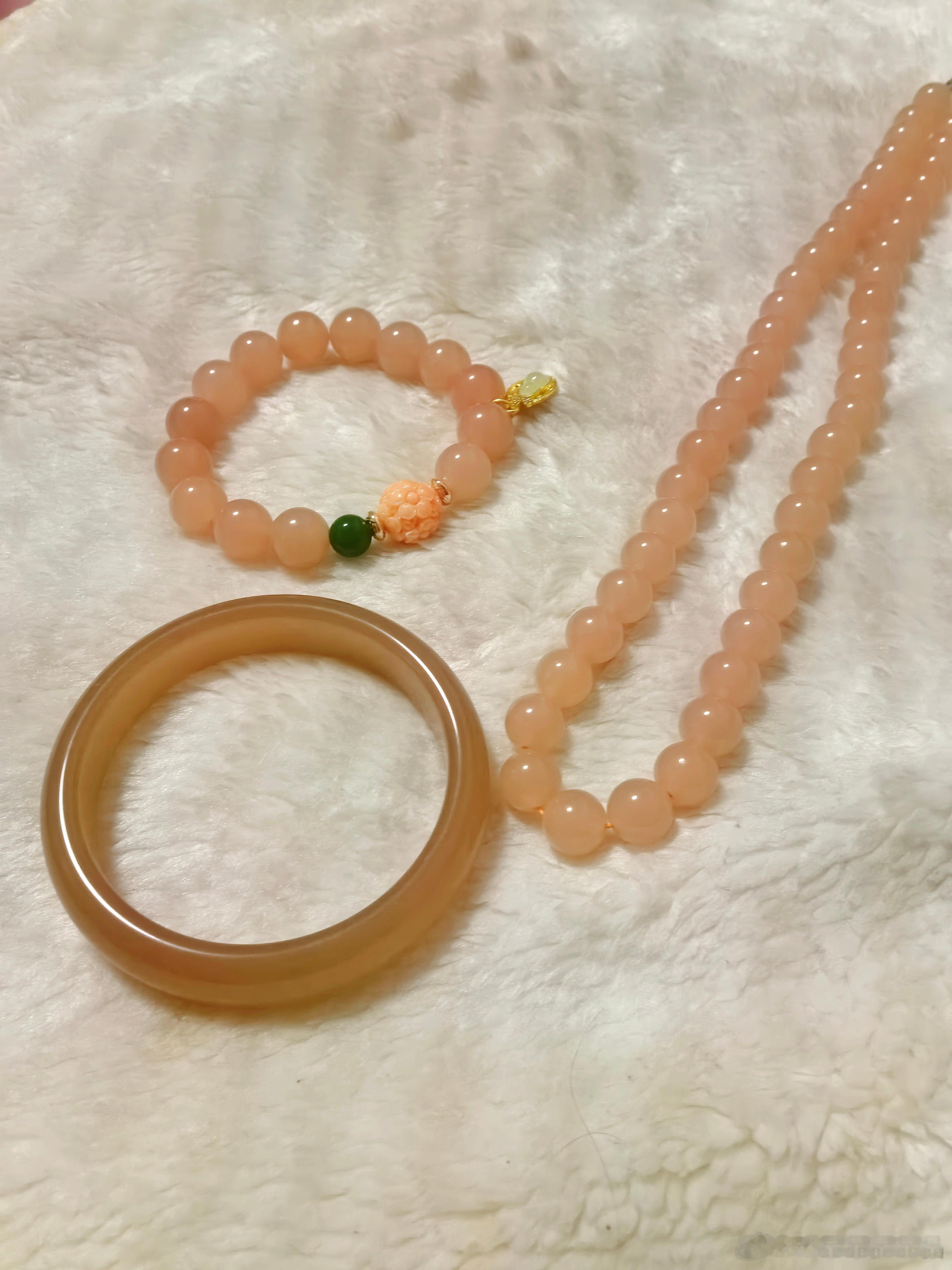 项链和手链是藕粉色,手镯是熟透了的藕粉色,更喜欢哪个颜色?