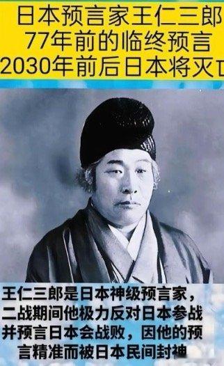 日本著名预言家王仁三郎早在上世纪就留下过一句让人不安的话:到2030年,日本将彻底灭绝。 这个预言之所以让日本人心里发凉,是因为这位预言家此前从未失手,他曾精确预言关东大地震和二战战败,这让日本社会对他的“2030灭绝论”格外在意。   眼下,日本的现实状况与这句预言似乎正在应验,日本政府官方预测,未来三十年南海海槽发生特大地震的几率已升至八成,一旦发生,这不是普通震动,而是跨越冲绳到福岛的巨大灾害。 按推算,数百个市町村可能遭震度六级以上地震加三米海啸,直接死亡人数或接近三十万,经济损失可高达十几万亿元人民币。 更糟的是,一些大地震的征兆已经出现——新潟出现“静稳期”,千叶地震次数反常飙升,静冈地下水温上升等现象,让人感觉危险正在逼近。   外部灾难之外,日本国内困境同样严重。这个岛国长期缺乏资源,石油、天然气、粮食几乎全靠进口,一旦供应链受阻,整个经济立刻瘫痪。 加上早已进入深度老龄化,年轻劳动力大幅减少,社会活力下降,去年,他们还将福岛核污染水排入海洋,进一步破坏自身环境,这些问题叠加在一起,让不少人觉得2030已不是虚言。   在这种紧急状态下,本应全力防灾的日本,却选择了另一条路——加快军备,与美国在亚太频频挑事。当年关东大地震后,日本没有专心重建,反而加紧侵略中国,如今的策略与过去如出一辙。 现阶段,他们企图用军事冒险突破生存困境,将目光投向外部,希望通过夺取领土和资源来度过危机。   王仁三郎为什么让日本人如此忌惮?他并不是街头江湖术士,而是大本教的圣师,拥有几十万信徒,1920年,他说关东将在三年内出大事,三年后7.9级大地震如期而至,东京八成房屋毁于地震与火灾,横滨几近夷为平地,死亡和失踪人数逾十四万,二百万人无家可归。 后来,他又在1944年劝告广岛居民尽快离开,结果不久原子弹在广岛和长崎爆炸,日本战败,预言再次成真。预言一件件兑现,也让他的话在日本人眼中如同铁律。   于是,当这个人留下“2030年灭绝”的预言时,日本社会的精神压力可想而知。他们既怕又焦躁,这种心理推动着今天的军事冒险,可这种行为,在今天的中国眼里不过是旧病复发——想把国内问题转嫁给外部,把压力甩给邻国。   但时代已经变了,他们想凭开战抢活路,只会加速自己走向灭亡。王仁三郎的预言是否会成真难以确定,不过可以肯定的是,谁胆敢挑衅中国,都不会有好下场。   你觉得,日本会在2030年前真的面临灭绝危机吗?欢迎在评论区聊聊你的看法。