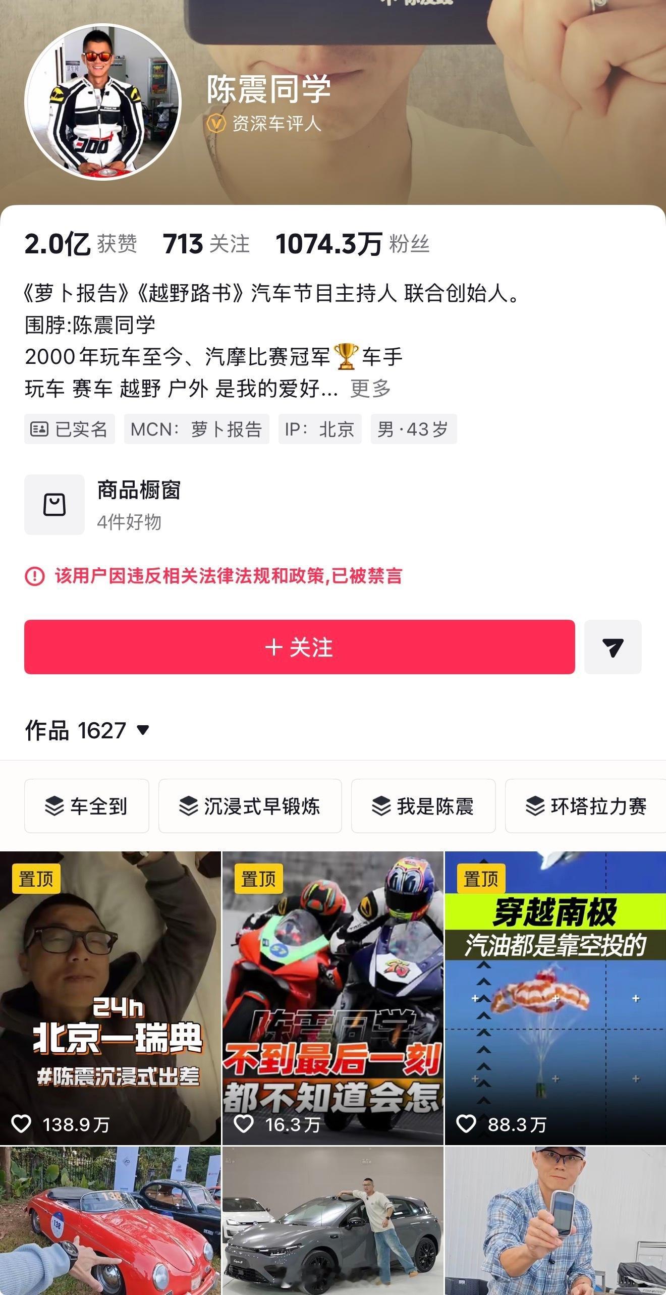 陈震被禁言突发,陈震被全网禁言了,禁期未知