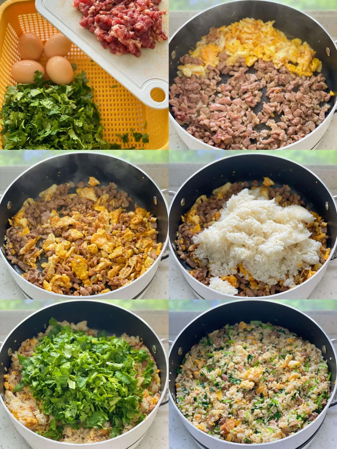 香菜|瘦肉|鸡蛋|米饭|生抽|盐