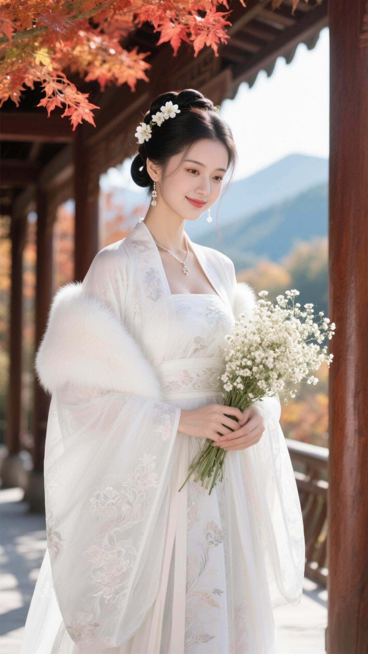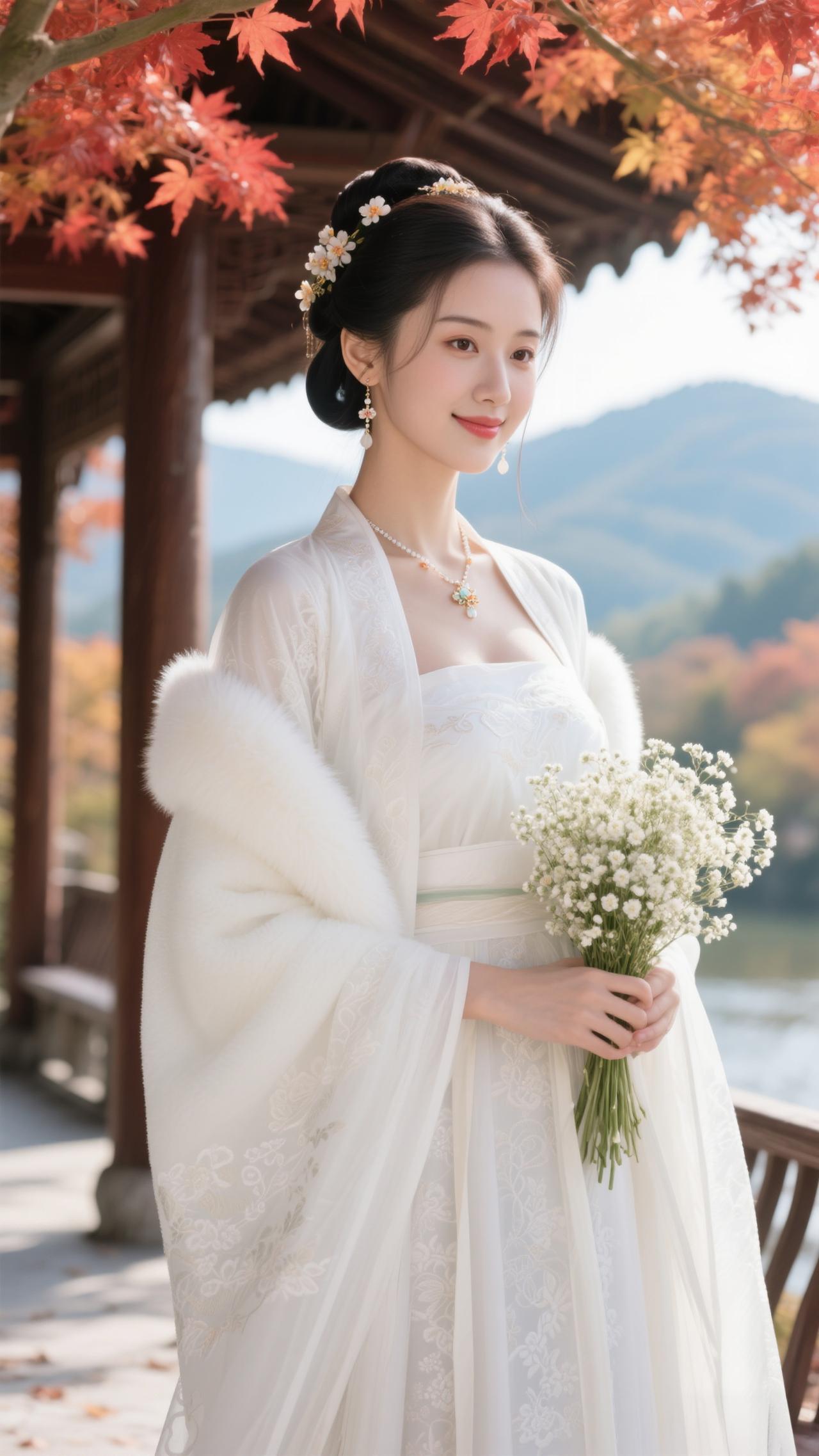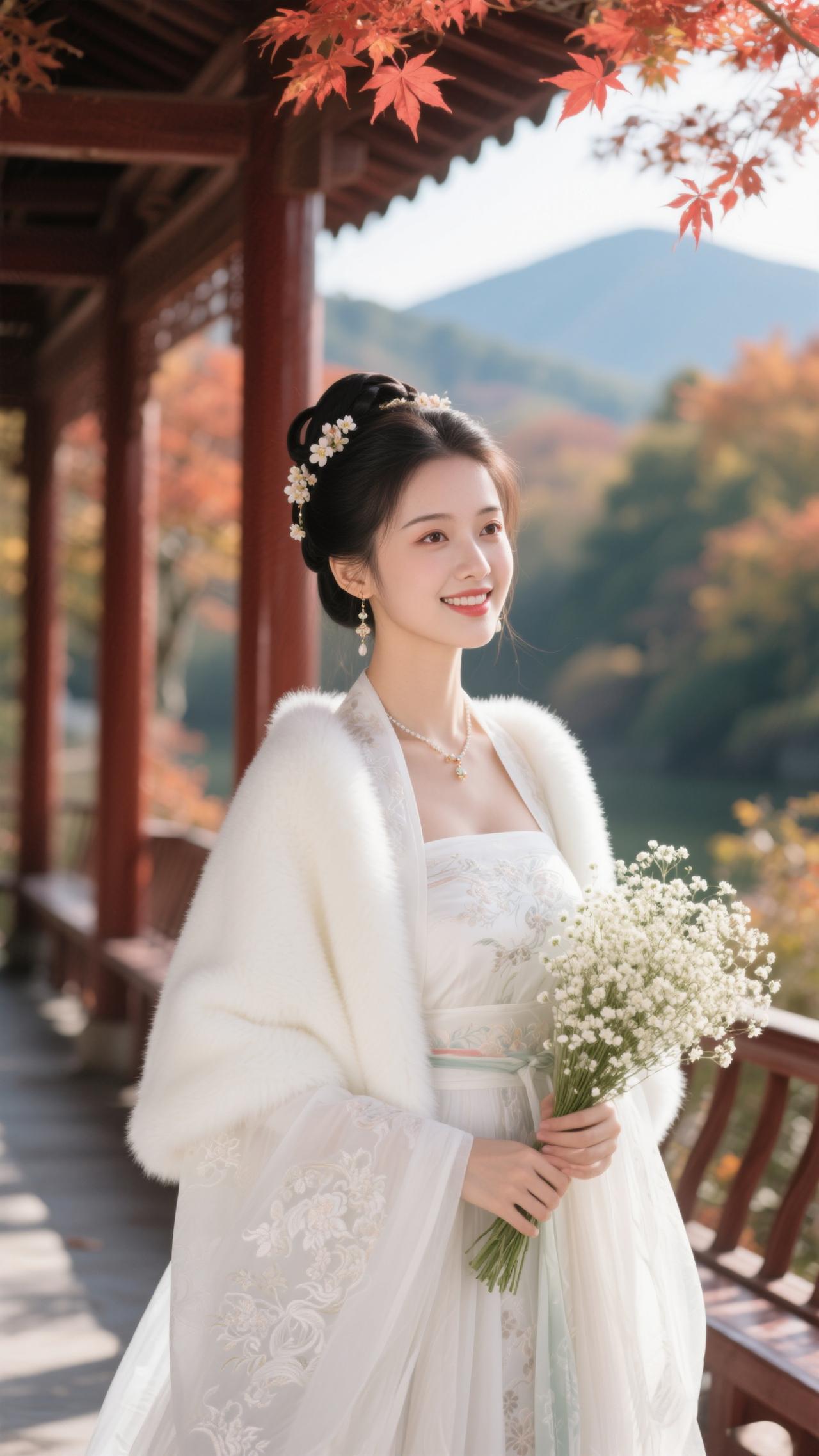 这个季节的枫叶和汉服适配度直接拉满~汉服写真 原创古风计划 国风古韵 汉服穿搭 清纯甜美 鹧鸪天·秋亭抱花 罗袂生香倚榭栏,白绡轻覆玉光绵。花簪暗锁玲珑韵,星蕊明承秋意甜。 心自静,意偏娴,愿将幽绪寄云笺。一襟柔色随风漫,醉卧枫前梦也安。