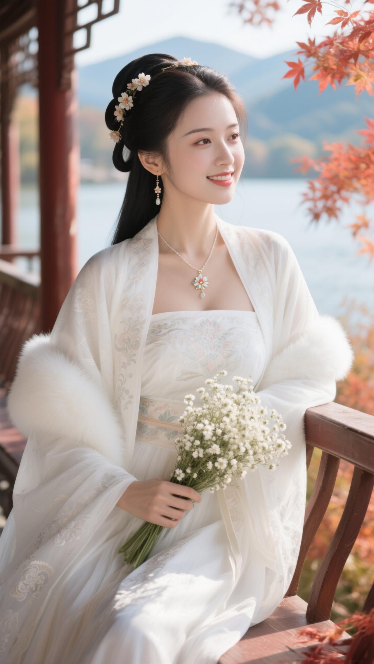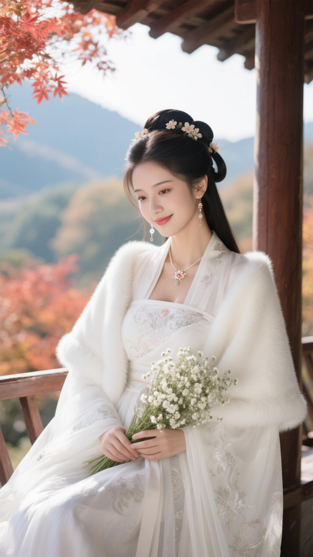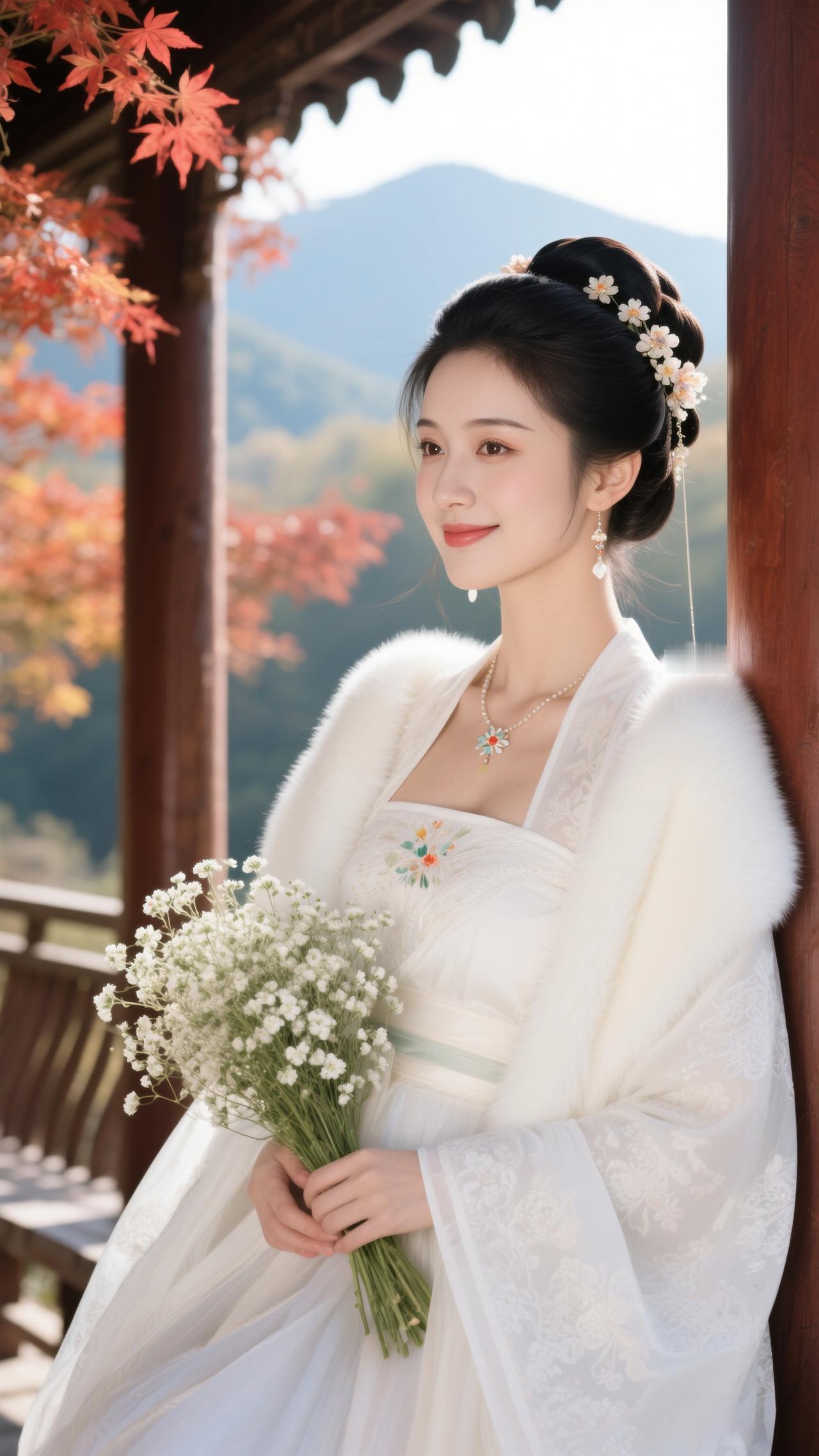 这个季节的枫叶和汉服适配度直接拉满~汉服写真 原创古风计划 国风古韵 汉服穿搭 清纯甜美 鹧鸪天·秋亭抱花 罗袂生香倚榭栏,白绡轻覆玉光绵。花簪暗锁玲珑韵,星蕊明承秋意甜。 心自静,意偏娴,愿将幽绪寄云笺。一襟柔色随风漫,醉卧枫前梦也安。