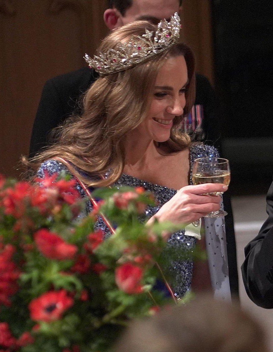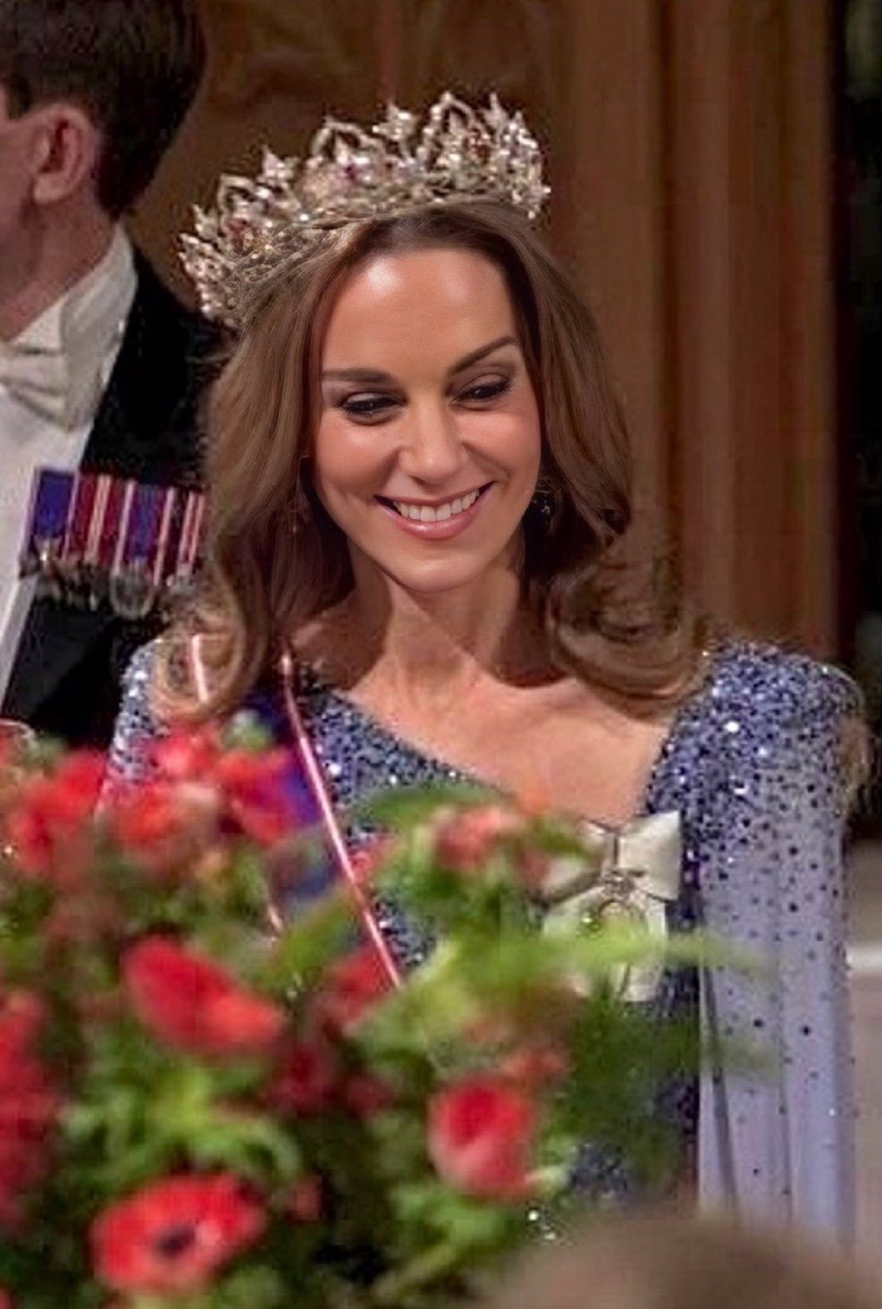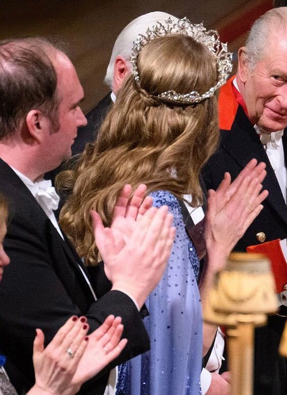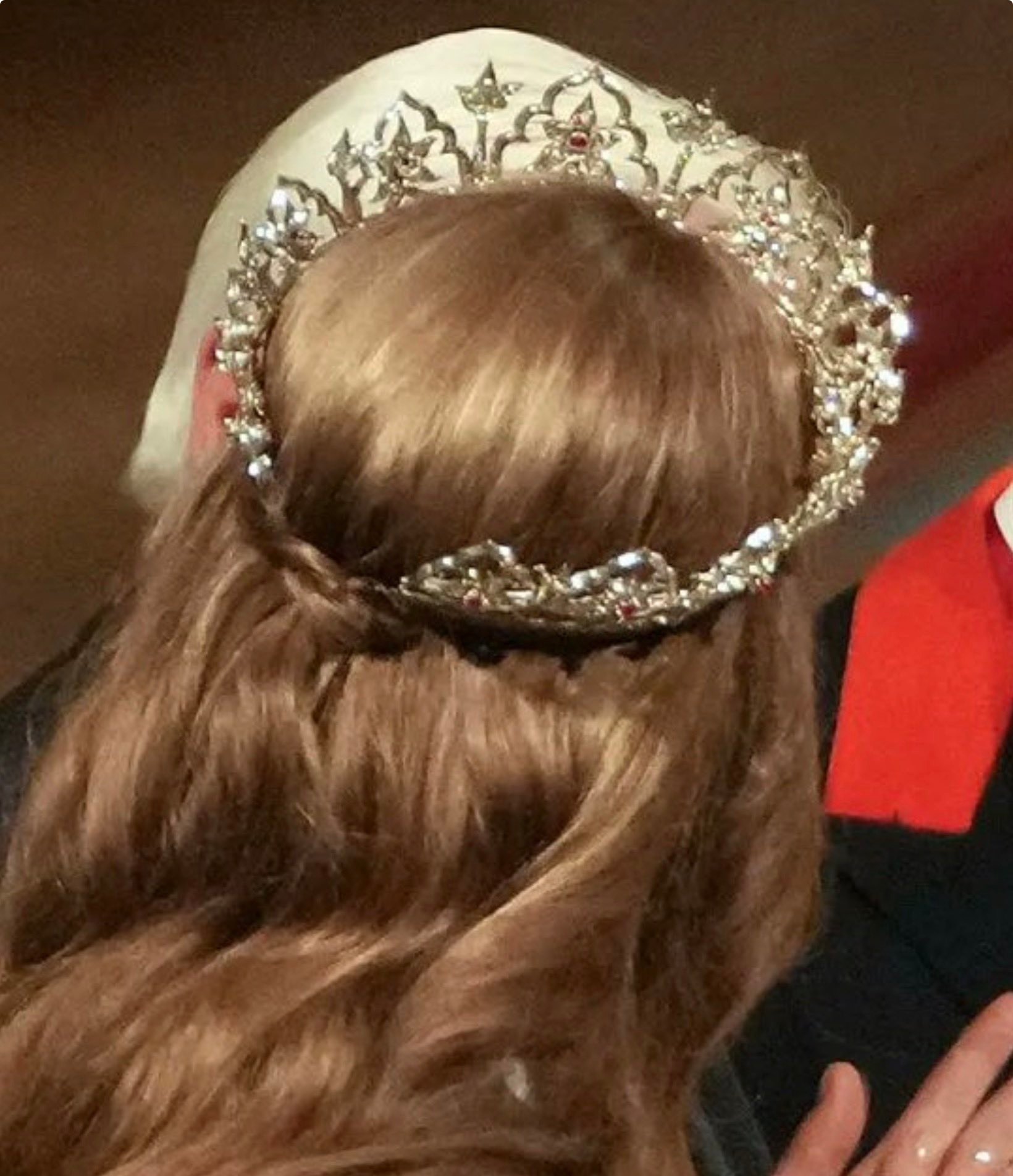 放大放大再放大……原来也是用头发固定了下王冠~但结果很明显,披发戴王冠,这种固定方法有≈没有。有了这次对照,下次戴大物件一定一定一定要让阿曼达给盘发呀~katemiddleton英国王室凯特王妃