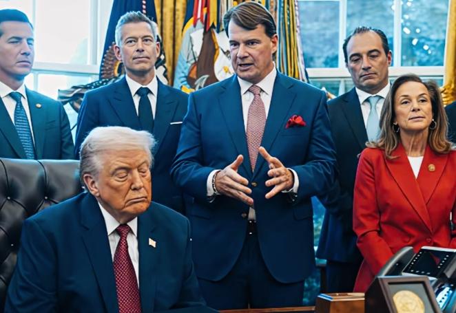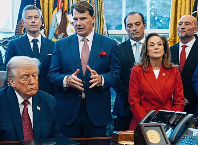 特朗普这是在闭目养神还是在深入思考呢? 是不是很享受其他人站着跟他汇报工作啊? 这姿势闭着眼像不像是睡着了? 这样在听工作汇报,不至于还要眯一会吗?