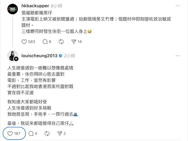 张继聪近日被网友封为 “黑仔王”。原因是他筹备了整整八年、自掏腰包投入六位数资金且担任主演的电影《金童》前不久终于上映,原本票房正稳步攀升,怎料上月 26 日发生了大埔宏福苑大火这样的悲剧。香港民众陷入深深的悲痛之中,纷纷减少娱乐活动,电影团队也顺应这样的社会氛围,叫停了影片的谢票活动。祸不单行的是,宏福苑和张继聪以及他的妻子谢安琪其实有着很深的渊源。谢安琪日前心痛地发文称,自己从童年到结婚前,在宏福苑住了很多年,这里是她成长的家园。当得知不少老同学、长辈和邻居都在大火中丧生时,她表示内心的悲痛沉重到难以用言语形容。据悉,谢安琪当年住在宏泰阁,张继聪当年正是在这栋楼楼下的公园向她表白的。而宏泰阁恰恰是这次大火中死亡人数最多的一栋楼。张继聪和谢安琪结婚后依旧住在大埔,再加上宏福苑位于大埔入口处,是大埔人回家的必经之路,实在难以想象两人每次经过这里时,内心会有多悲痛。网友对张继聪的遭遇深感同情,也称赞他在这个时候还和妻子一起捐出 100 万用于赈灾。无独有偶,日前网上流传着一张据称是 “宏福苑大火前的最后一份公告”。公告内容显示,11 月中旬到 1 月中旬期间,该小区会出借场地给 ViuTV 剧组拍戏,希望征用小区内的四个单元。网友推测这部剧正是张继聪和周秀娜主演的《小业主战线》,这部剧讲述的是小业主对抗业主委员会围标作弊的故事。剧集原本已经开机拍摄了一个多星期,只是题材较为敏感,如今能不能继续拍摄还是个未知数。不止有一位网友发文表示觉得他运气差、太倒霉,但张继聪却十分乐观地回复道:“Stay positive 💪🏼”。还有一位网友发文说:“张继聪也太倒霉了,主演的电影上映被新闻盖住了风头;拍戏的场地也没了;剧的题材还一下子变成了敏感题材。三件倒霉事同时发生在他一个艺人身上😅”。对此张继聪暖心回应道:“人生总会遇到一些难以想象的困境,最重要的是你用什么样的心态去面对。电影和工作肯定会受到影响,但比起我们香港现在正遭遇的事情,这些实在微不足道。我知道大家心里都不好受,人生本就会遇到很多挑战,我们肩并肩、手牵手,一起熬过去🫂。最后,我从来没觉得自己倒霉🙏🏻”。网友们纷纷对他表示支持,夸赞他为人真好,并表示会走进影院支持《金童》。跨年电影愿