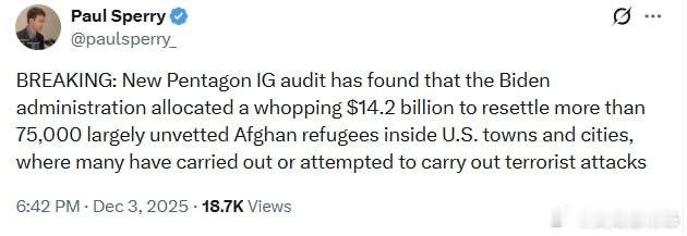 五角大樓監察長辦公室最新審計發現,拜登政府撥款高達142億美元,用於在美國城鎮和城市內安置超過7.5萬名基本上未經審查的阿富汗難民,其中許多人曾在美國境內實施或試圖實施恐怖攻擊。