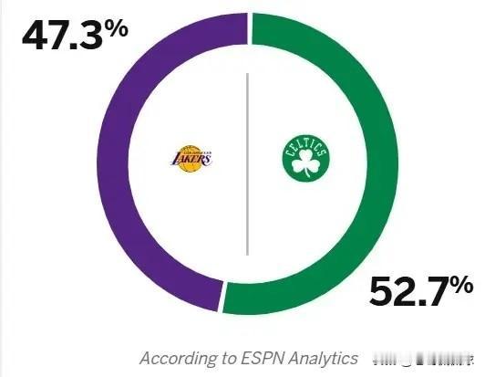 ESPN真是太看不起湖人巨星詹姆斯了!明天湖人将会在客场迎来和凯尔特人的焦点战,今天ESPN对于明天这场重头戏进行了一番预测,结果由詹姆斯领衔的湖人只有47.3%的胜率,低于凯尔特人的52.7%。 ESPN这是明目张胆的看不起詹姆斯,ESPN觉得在东契奇缺阵的情况下,詹姆斯完全不具备带领湖人击败绿军的能力。