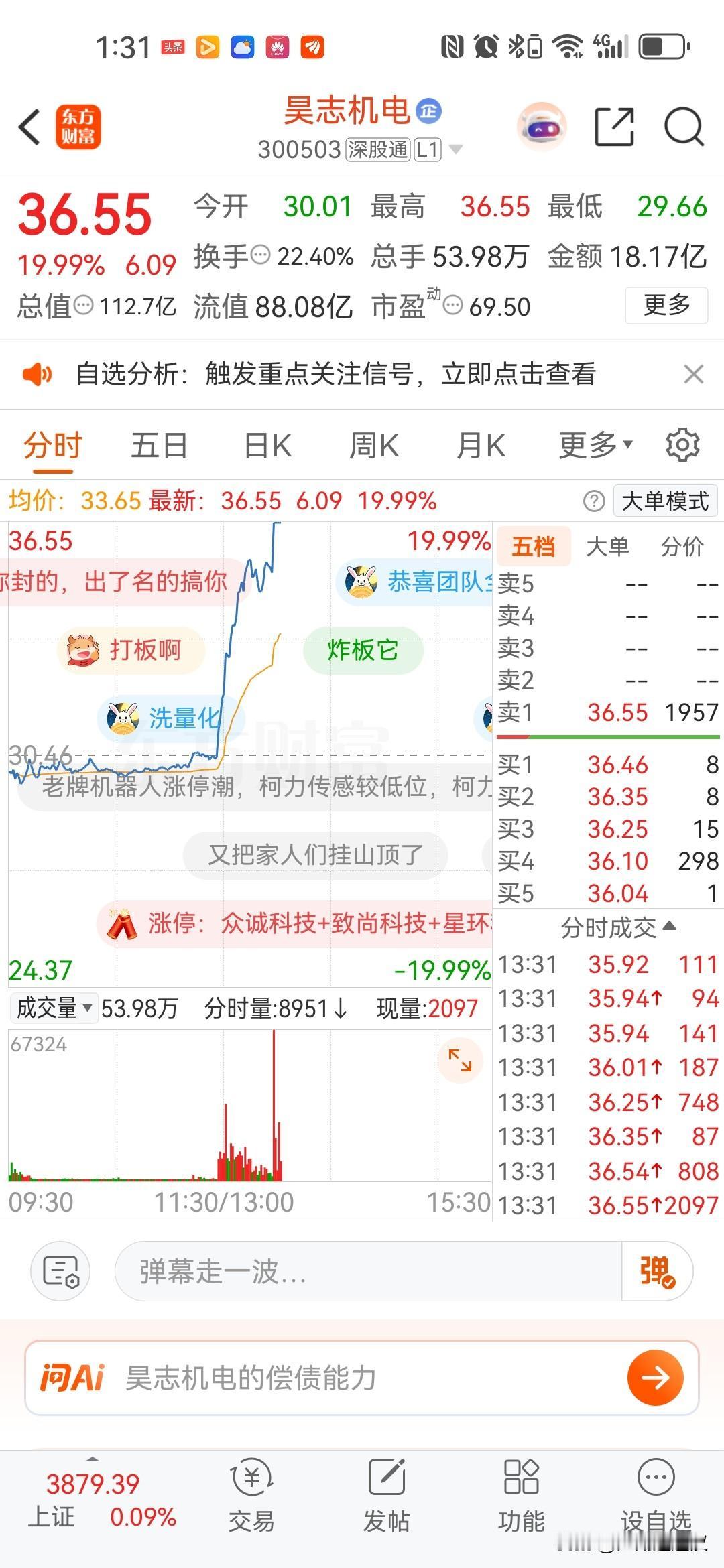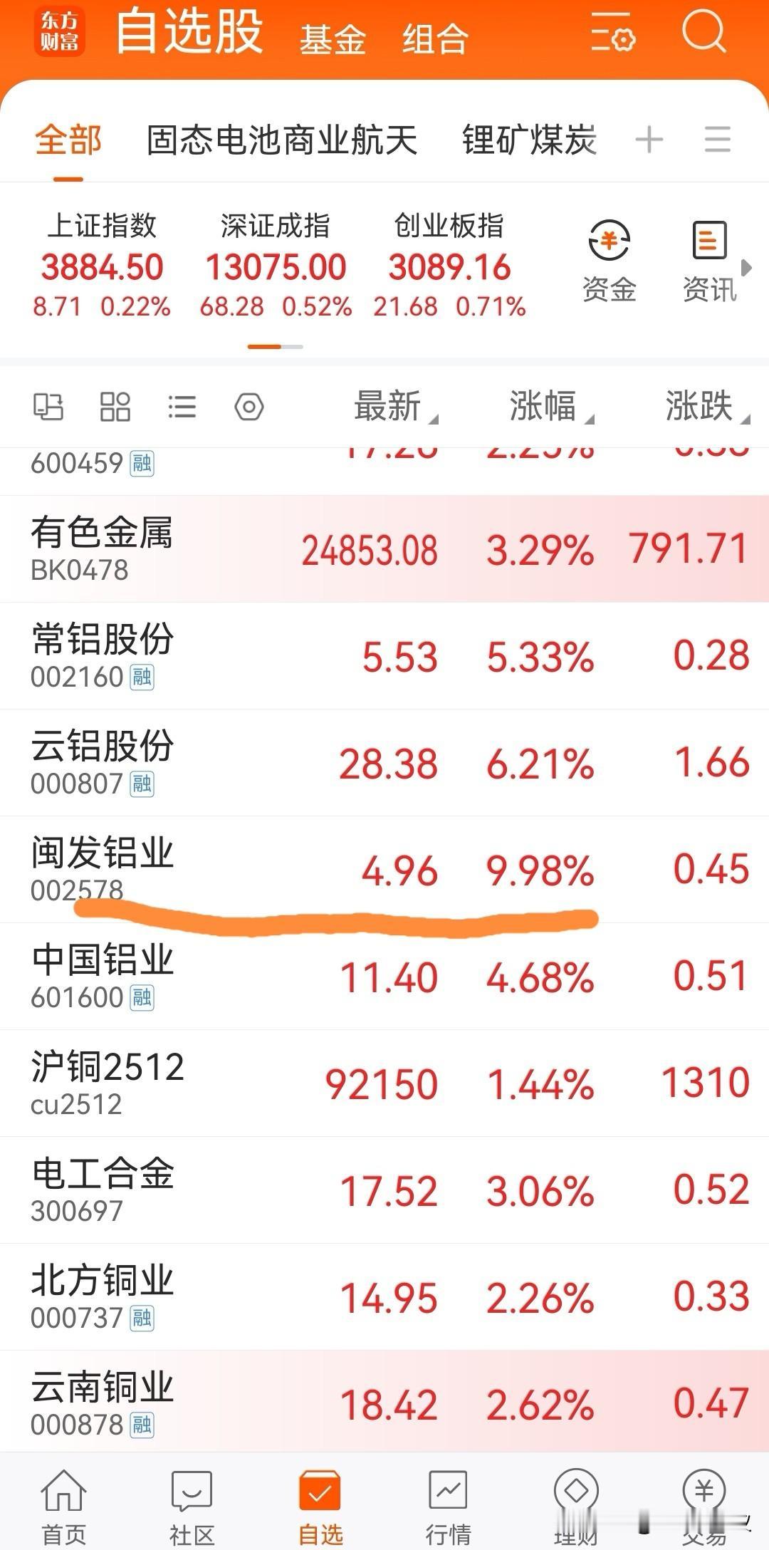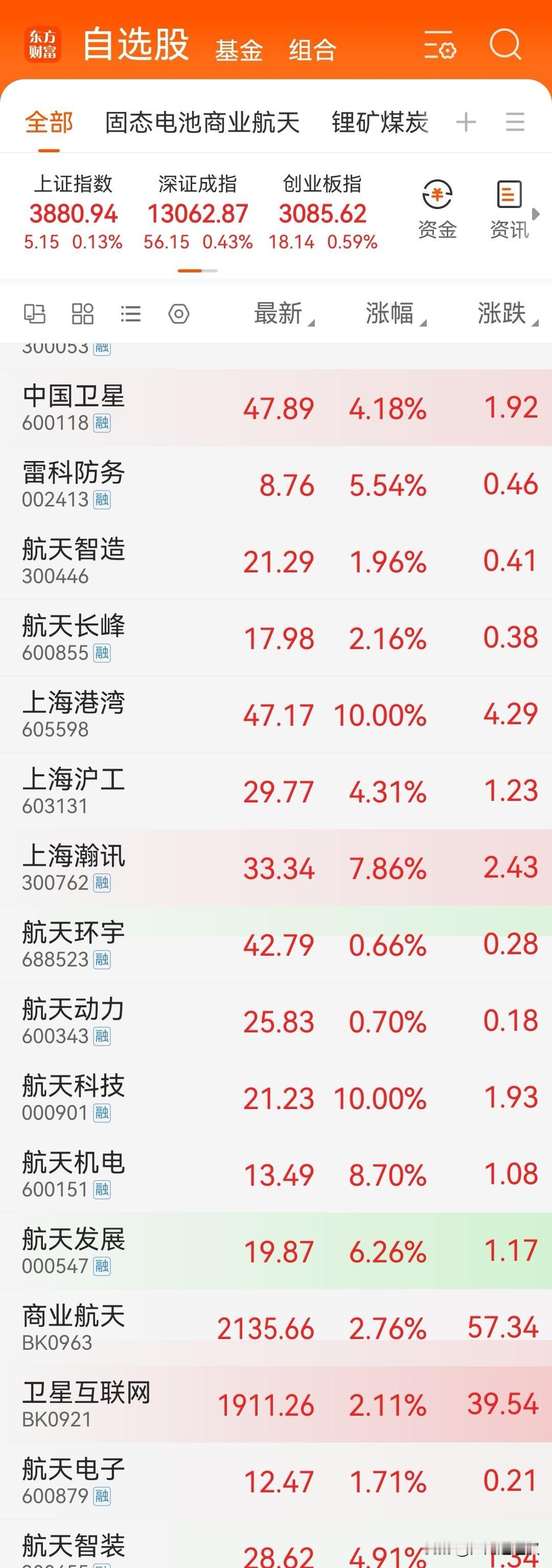 朋友们坐稳扶好,今天又是吃大肉的一天,跟我1号预计的大差不差,今天航空航天板块 延续强势行情,有色金属板块 也纷纷大涨,金银铝锡概念 中的黄金股晓程科技 大涨,铝业股闽发铝业 涨停,昨天给大家推荐的机器人概念股也涨的很不错,昊志机电 大涨10%以上,甲流概念今天调整,下周还有行情,再读不懂这波行情,将完美错过2025年最后一波机会,大A板块今日完美接照我写的剧本走,朋友们赶快上车。航天产业链 航空航天概念股 A股市场主线