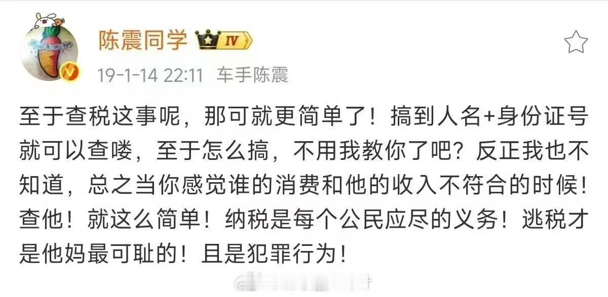 陈震偷税案到这一步了,这事儿性质已经变了,禁言就不是七天半个月的事了,很有可能就彻底没了。陈震偷税追缴并罚共计247.48万元