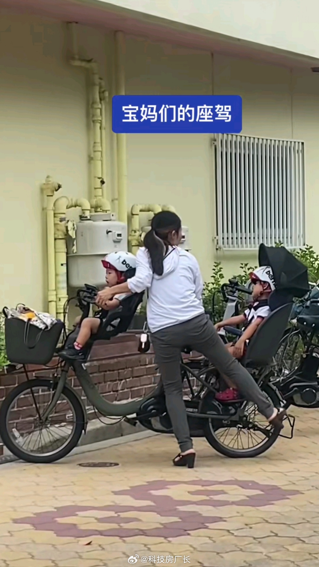 看看小日本的电助力自行车,宝妈带两娃出行正好