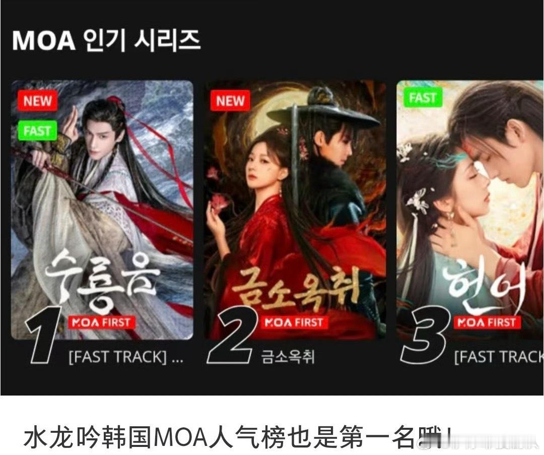 韩国MOA 平台(只有中剧的付费流媒体),新剧最先上平台,该平台主要收集👖和🥭,没有韩文字幕的平台新剧历届榜单第一:杨紫《国色芳华》从开播到结束,一直是第一名。罗云熙《水龙吟》也登顶过该榜单。
