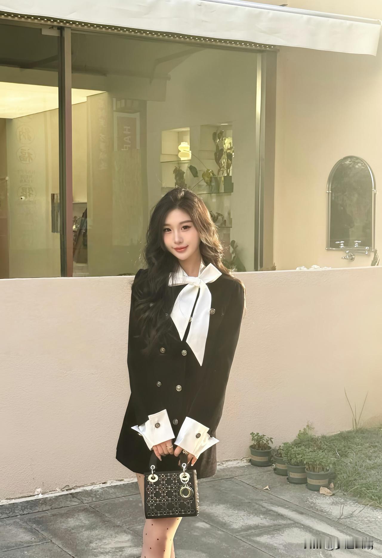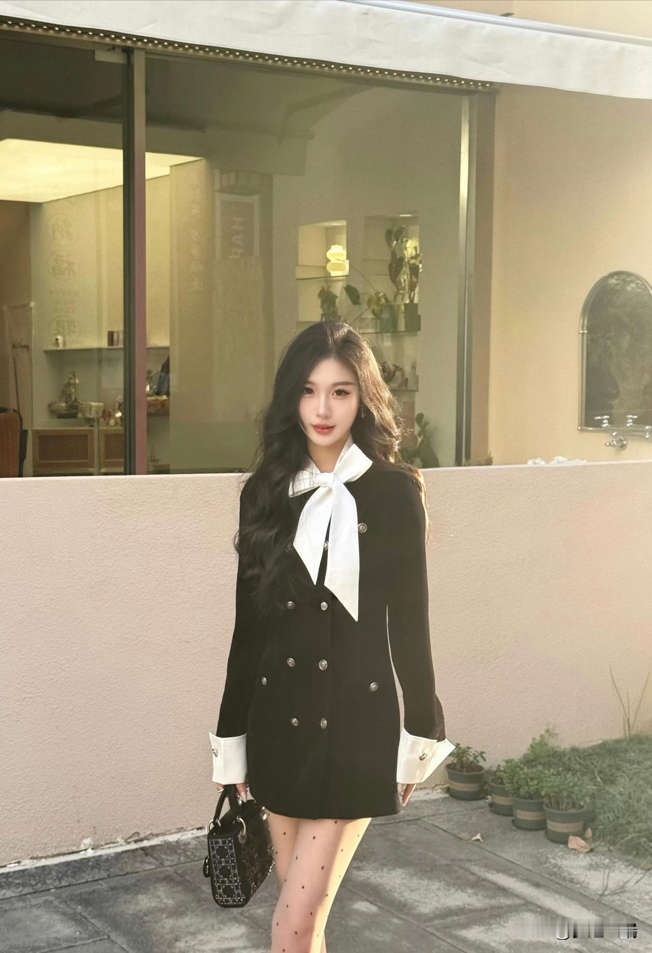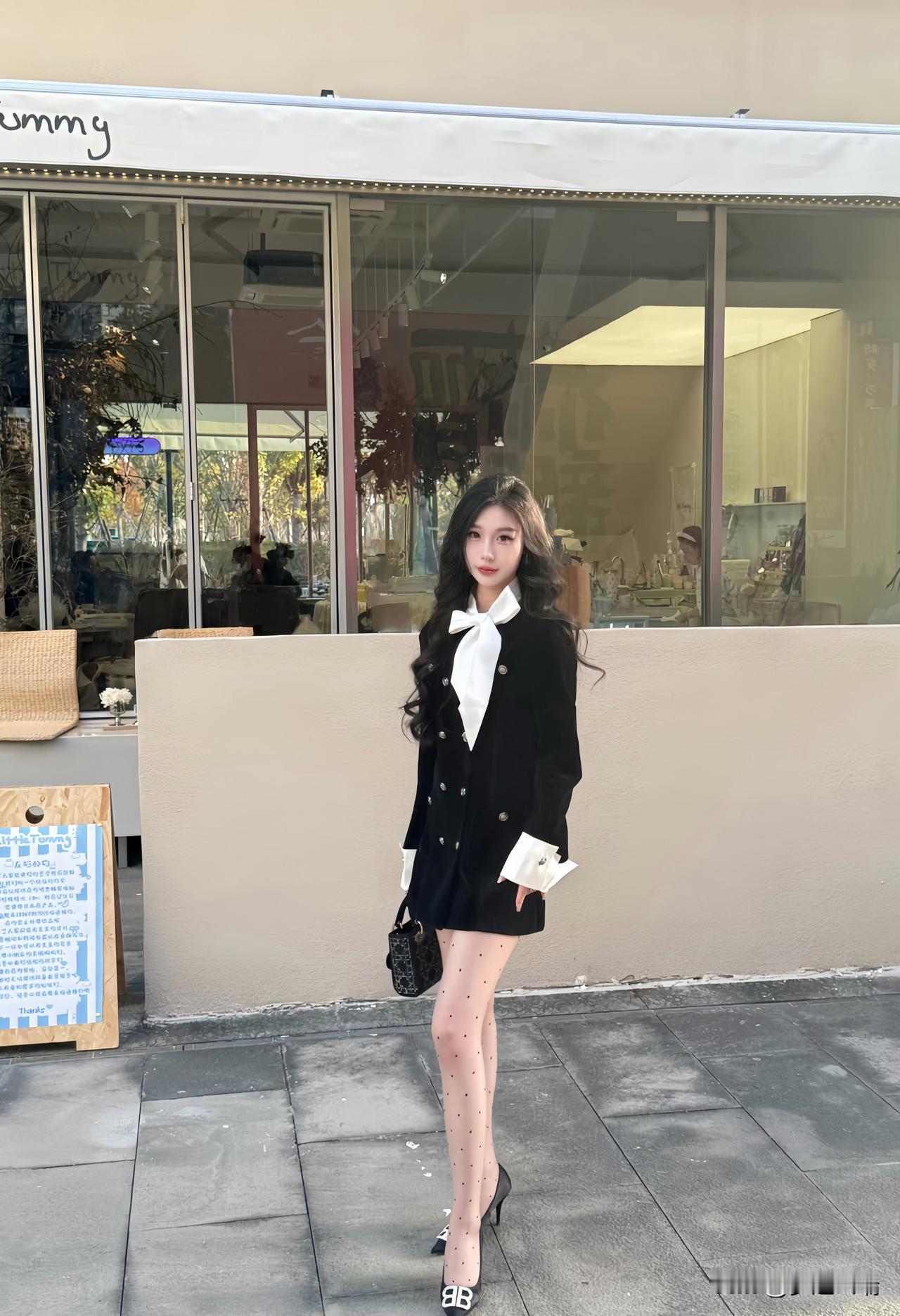 优雅黑裙穿搭,精致花艺背景,时尚感十足!
