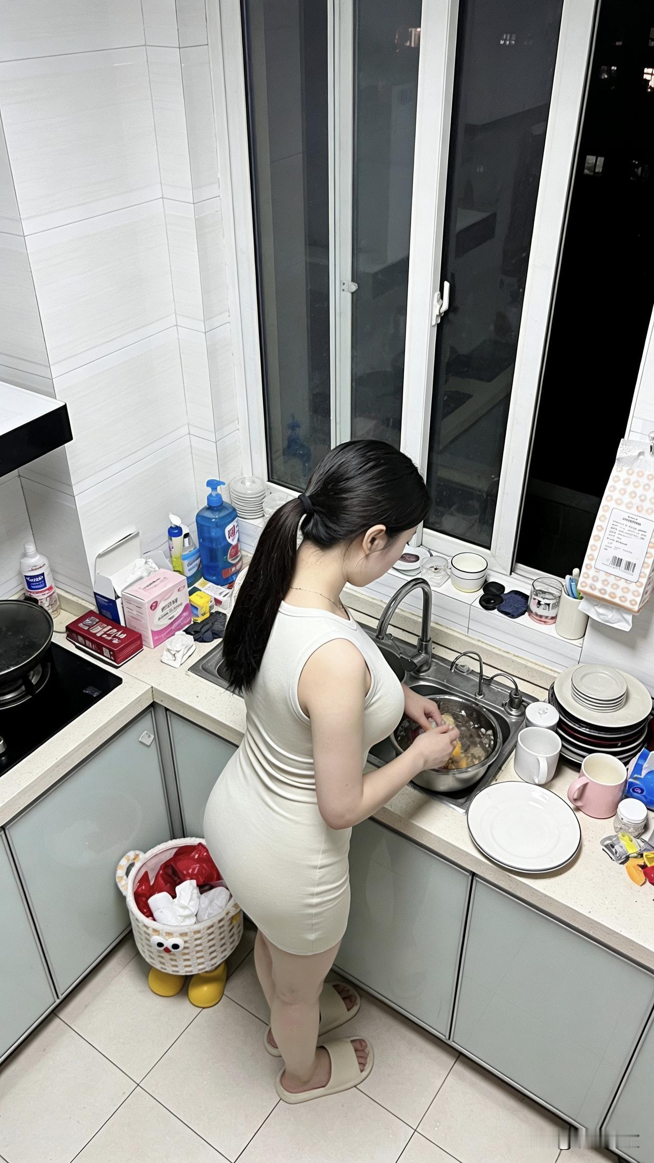 吃完饭刷个碗吧! 站在厨房水池前,穿着米色吊带裙,长发扎成马尾辫,感觉自己还挺利索的。 今晚做了老公最爱吃的红烧肉,结果吃得满桌都是油腻腻的盘子,现在得好好收拾一下。 水池里堆满了碗碟,还有那个粉色马克杯,是闺蜜送的生日礼物,每次用都心情不错。 窗外面已经黑透了,厨房的白色瓷砖墙在灯光下特别亮。刚才老公说要去洗碗,我说不用,让他去看电视,毕竟今天我做的菜嘛,收拾一下也理所当然。看着这些油乎乎的盘子,虽然有点累,但心里暖暖的,这就是生活啊!气质吊带裙穿搭 简约气质吊带裙 吊带气质穿搭 甜酷吊带裙
