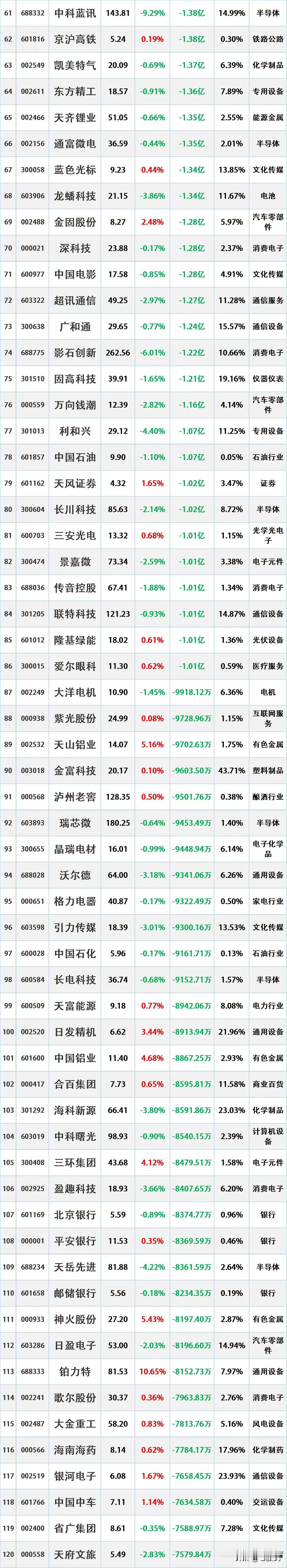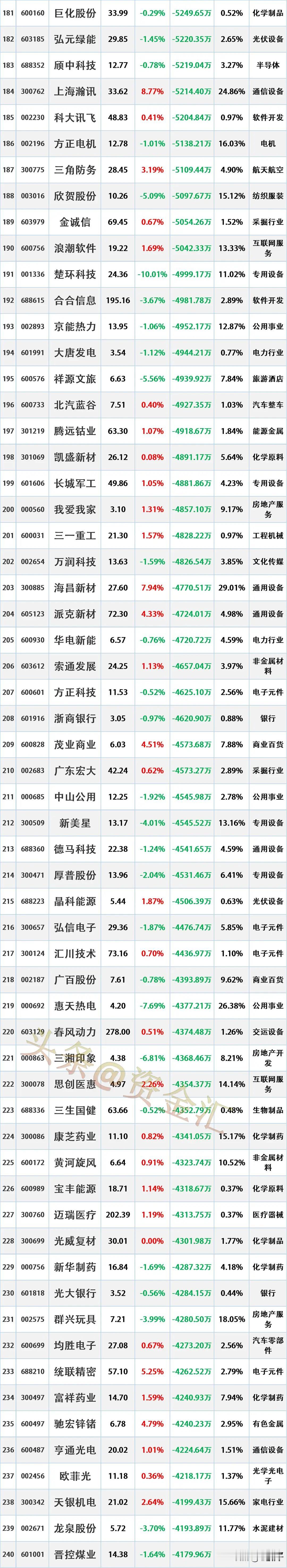 尾盘资金出逃,12月5日主力资金大幅流出的股票名单。 资金流出是指在一定时期内