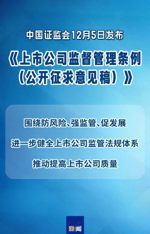 12月5日,中国证监会发布《上市公司监督管理条例(公开征求意见稿)》,这意味着我国将迎来首部专门的上市公司监管行政法规。