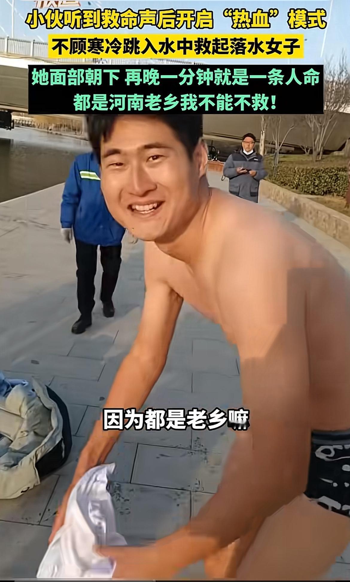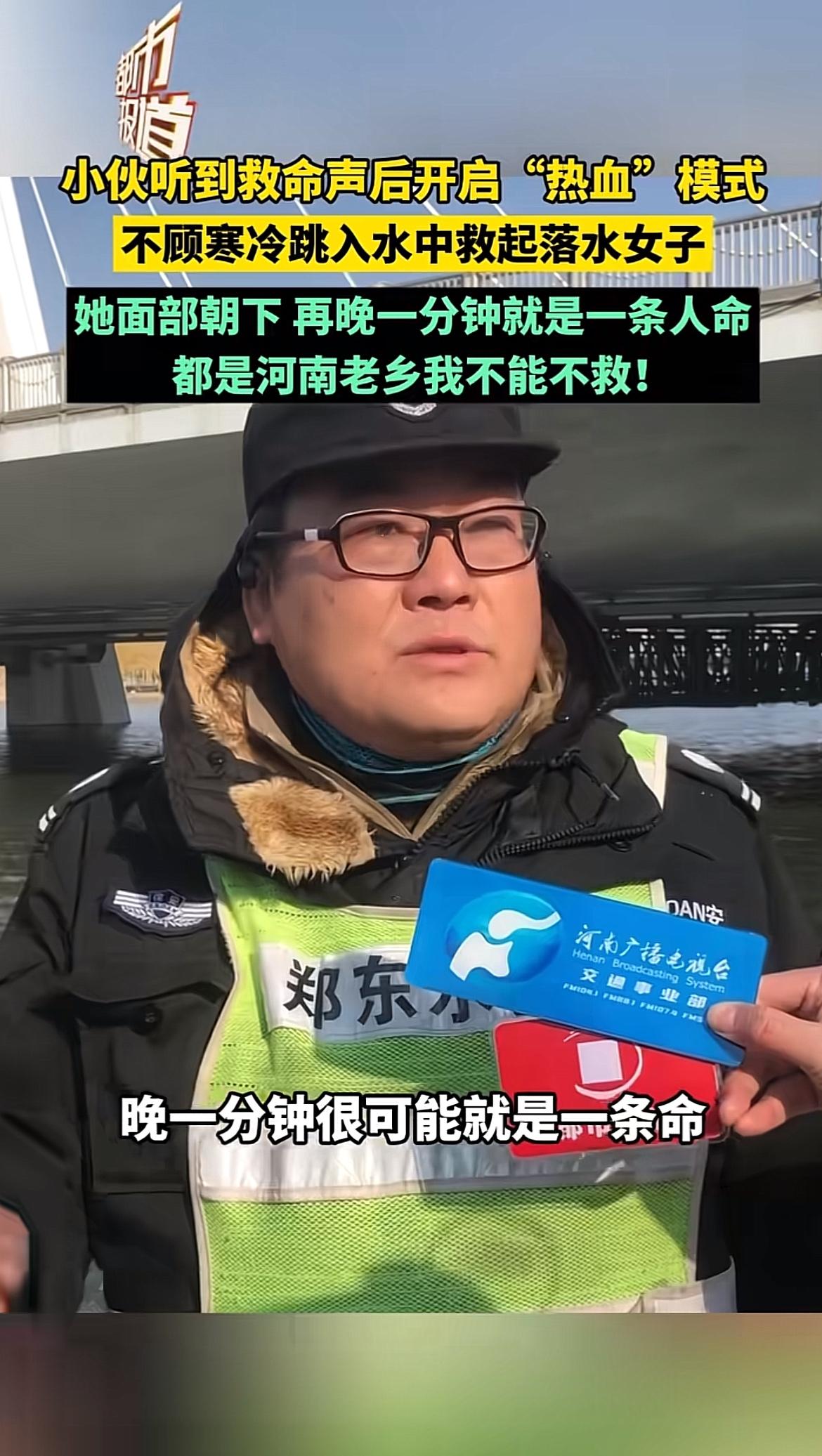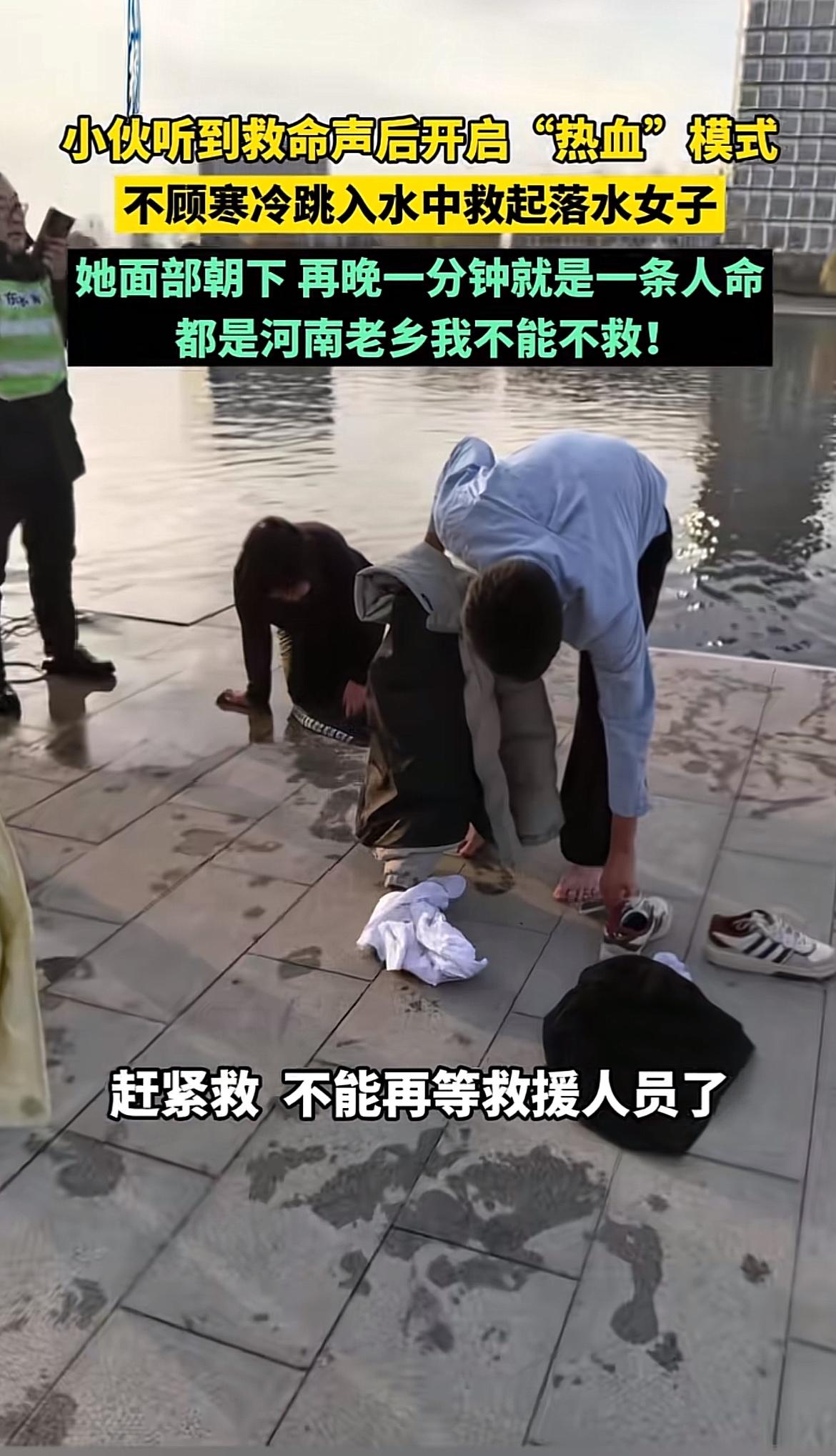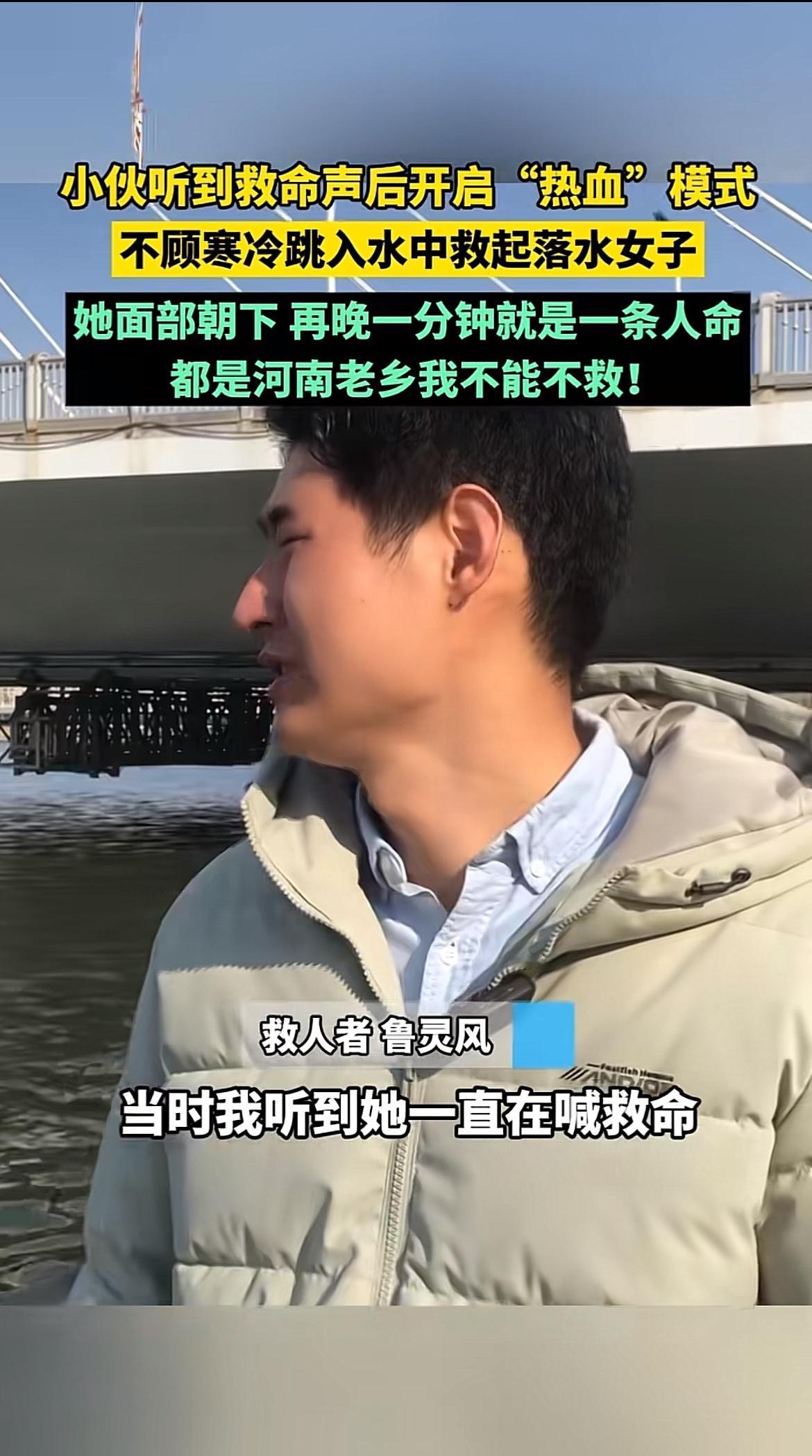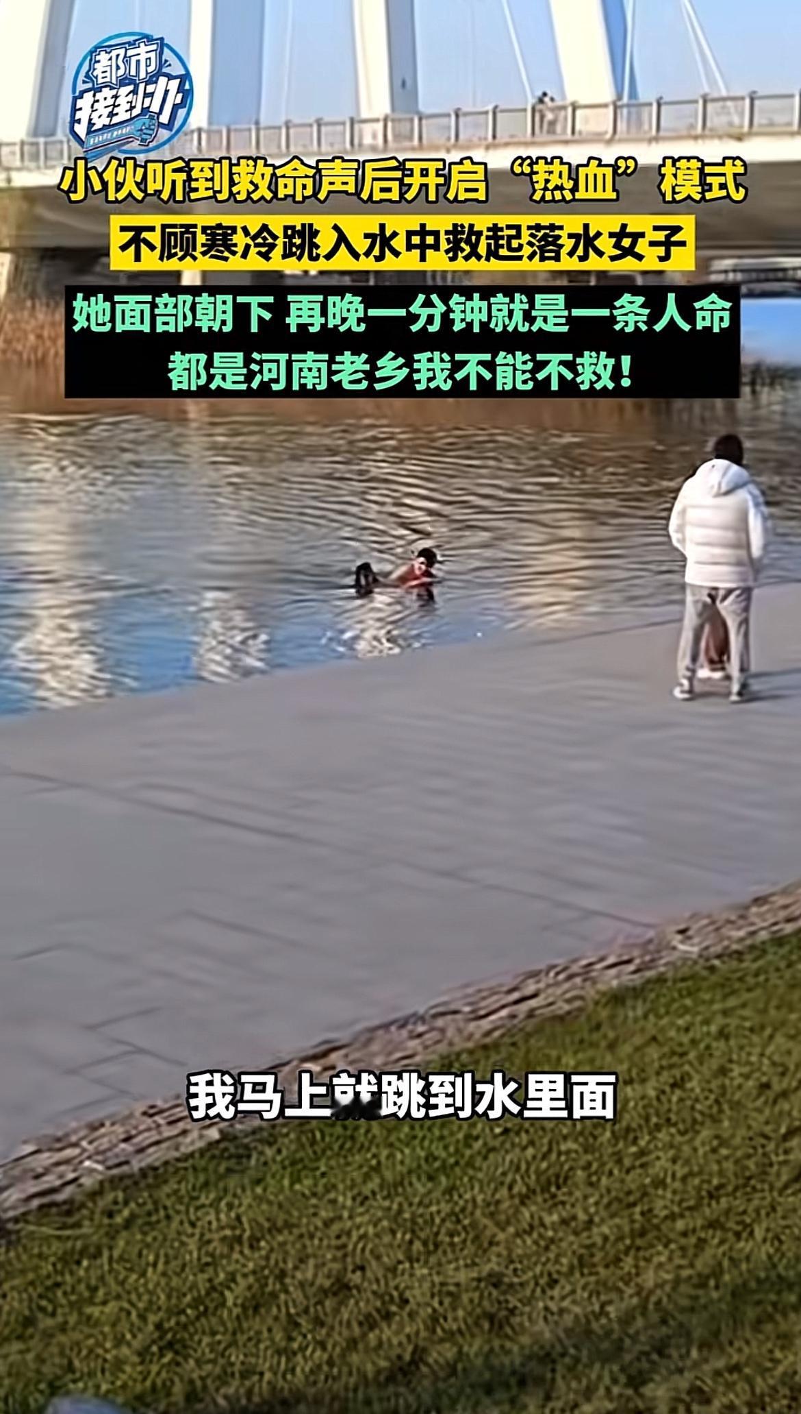 “都是河南老乡,我不能不救。”河南郑州,男子听到救命声,奋不顾身跳入河中救起落水女子。 鲁先生在河边散步时,突闻有人大喊救命,定睛一看,是30米远处河里有人落水。 “救救我!救救我!救命!”喊着,女子竟扑通地脸朝下,情况非常危急。 鲁先生见状,连忙和水务工作人员协商救人,可时间根本等不及救援人员来。救命要紧!鲁先生毫不犹豫跳进河里救人,所幸平安救上岸。 救人一命胜造七级浮屠,晚一分钟可能就是一条人命,鲁先生的英勇和果断挽救了女子的性命,更是挽救了一个家庭。舍身救命是真男人,真英雄! 但小编不建议盲目救人,救人提前得保障自己的安全,没把握的情况下,寻求救援说最佳方式,安全第一! 河南小伙听到救命声后跳水救人