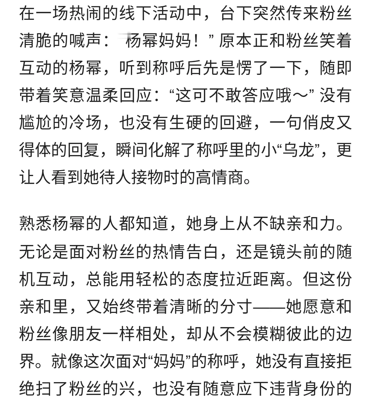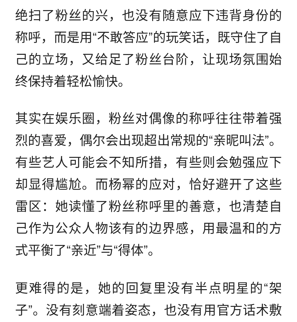 杨幂回应粉丝喊“妈妈”,一句“不敢答应”里藏着高情商的分寸感