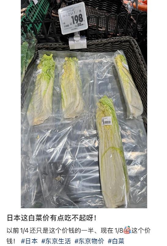日本超市居然开始卖1/8颗白菜,和1/2个鸡腿了,日本的物价已经高到把一颗白菜拆成8份卖了么? 消息源自于一位在日本的华人网友,其在日本超市发现包装成一份售卖的1/8白菜,感叹道为了让日本人在买肉买菜时不至于心疼钱包(毕竟物价实在太贵),日本超市如今十分贴心地推出了1/8个白菜和1/2个鸡腿售卖。 然后一袋大米从5公斤变成了4公斤,但售价不变,这样看起来就不像是涨价了,让日本人觉得物价并没有上涨的那么严重。 看着那点可怜的白菜,想象着这要是做一锅白菜猪肉炖粉条,恐怕都不够吃几口的。还有那半个鸡腿,这是给鸡吃的么?而且这1/8颗白菜要198日元,加上税要213日元,换成人民币要10块多,算起来一颗就要80多,难怪吃不起。 很多人至今还说着什么日本仍然是发达国家,人民生活水平依然远高于我们,但如果连最基本的吃着一项都无法随心所欲,何谈生活水平高呢?