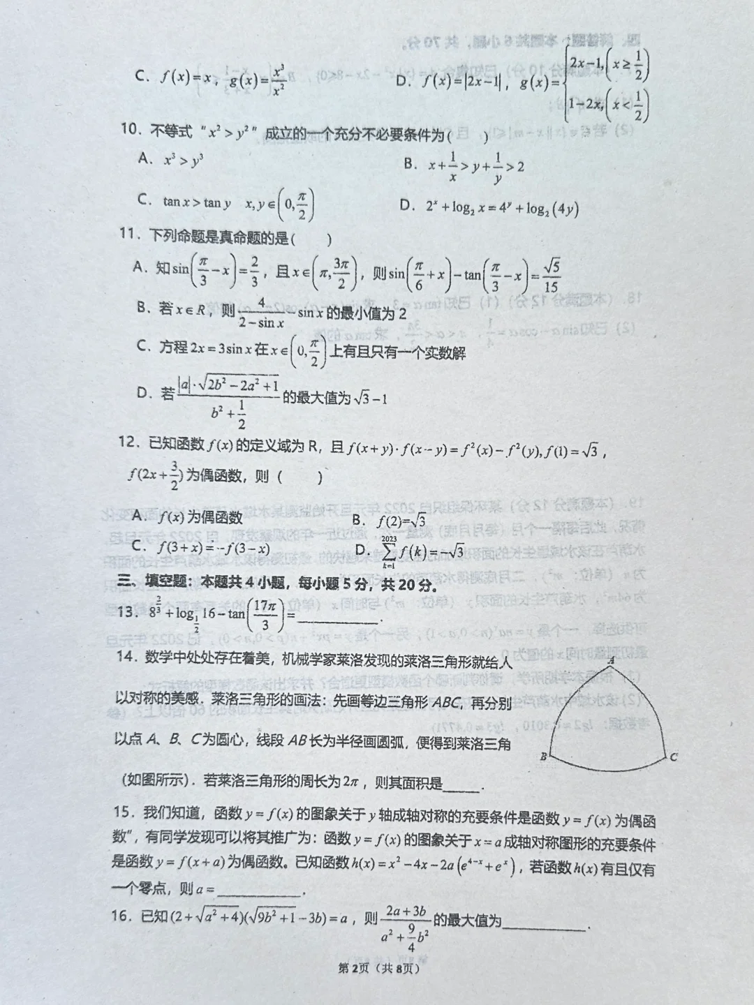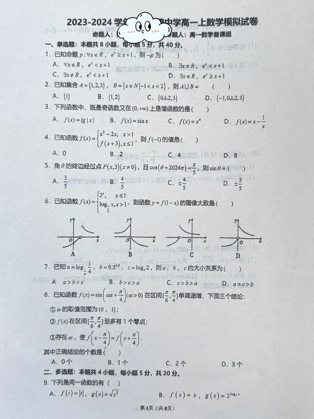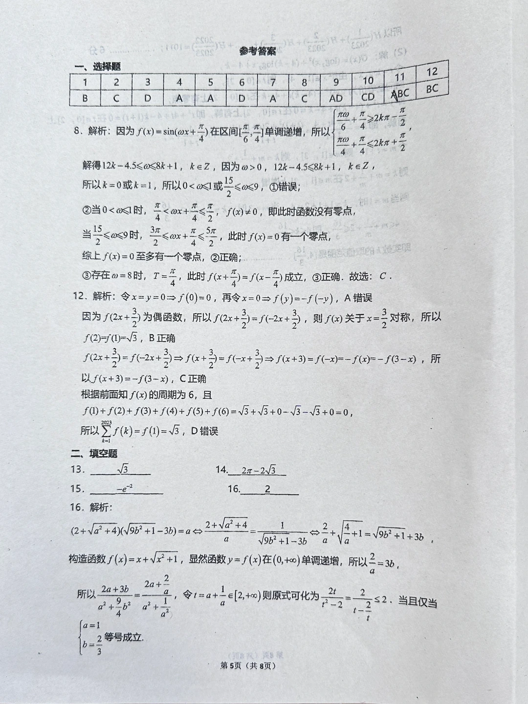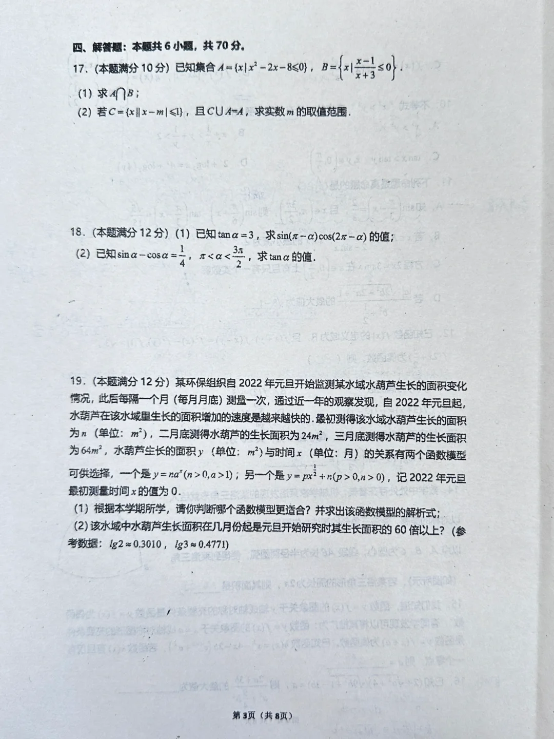学校周考,也是期末模拟。 选填有一定难度,解答题相对容易~