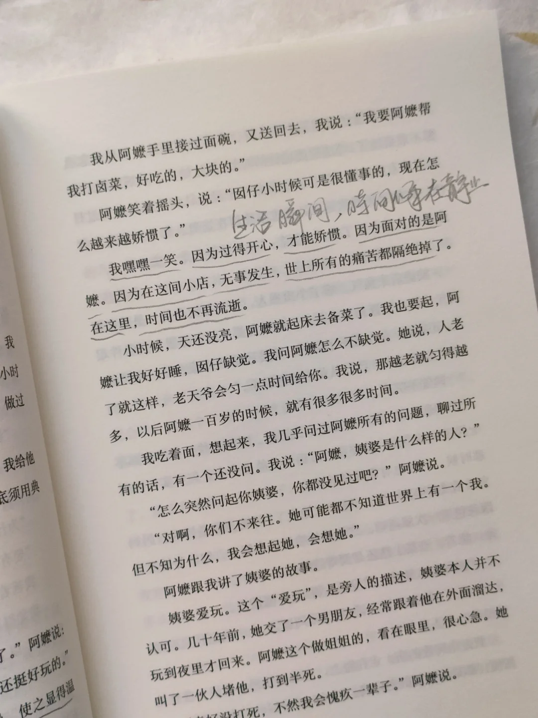 「因为过得开心,才能娇惯。因为面对的是阿嬷。因为在这间小店,无事发生,世上所有的痛苦都隔绝掉了。在这里,时间也不再流逝。」