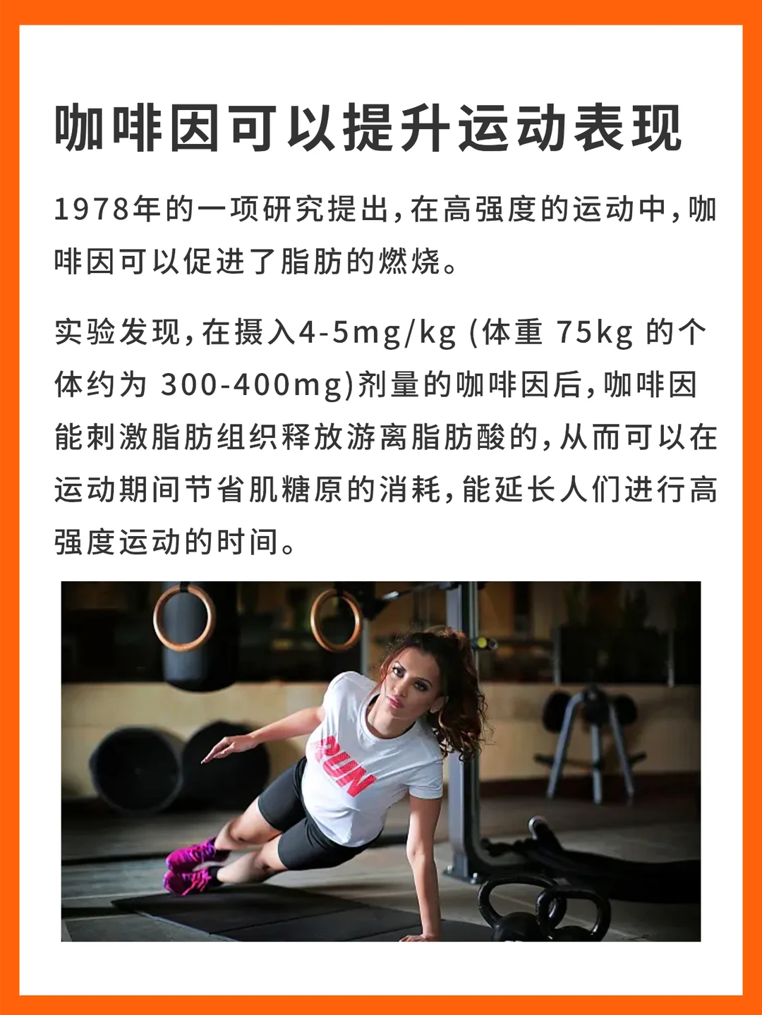 1978 年的一项研究提出,在高强度的运动中,咖啡因可以促进了脂肪的燃烧。
