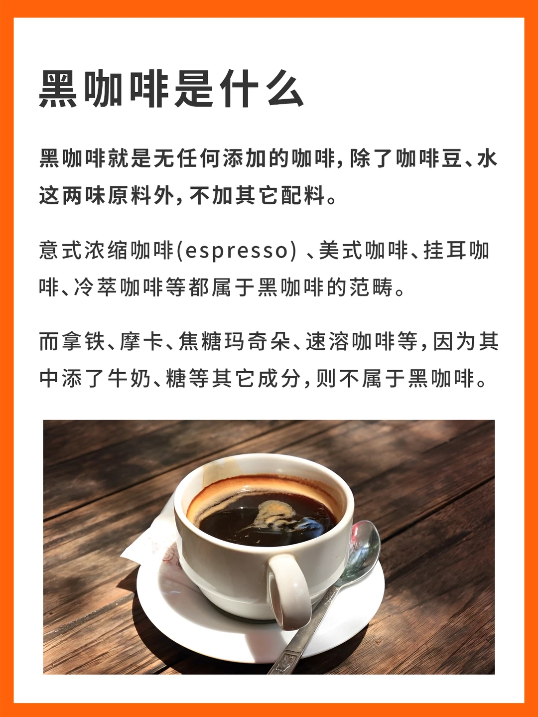 黑咖啡就是无任何添加的咖啡,除了咖啡豆、水这两味原料外,不加其它配料。