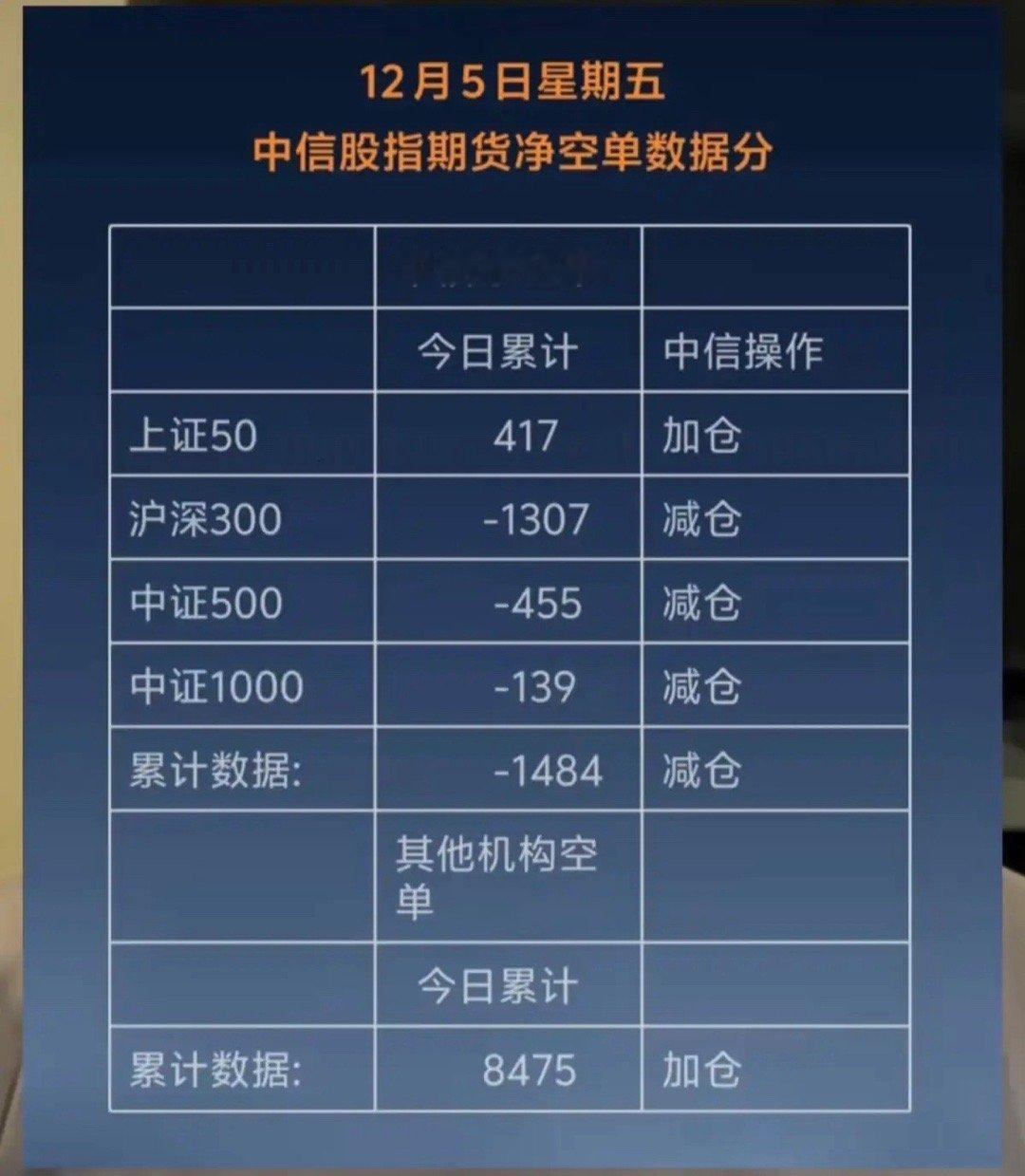 12.5周五 晚间 利空消息!中信大幅减仓了!机构也是跑路了!最新期指数据来了!中信净减仓1484手、从期指数据看:刚刚才小涨一天,中信就迫不及待大幅减仓出逃,下周行情不容乐观,控制好仓位。不作为投资买卖建议,仅供参考。