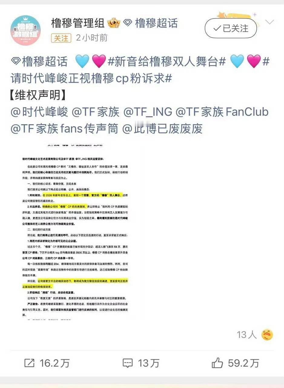 橹穆cp粉维权:请公司正视粉丝诉求,策划并落实王橹杰、穆祉丞双人舞台 橹穆管理组