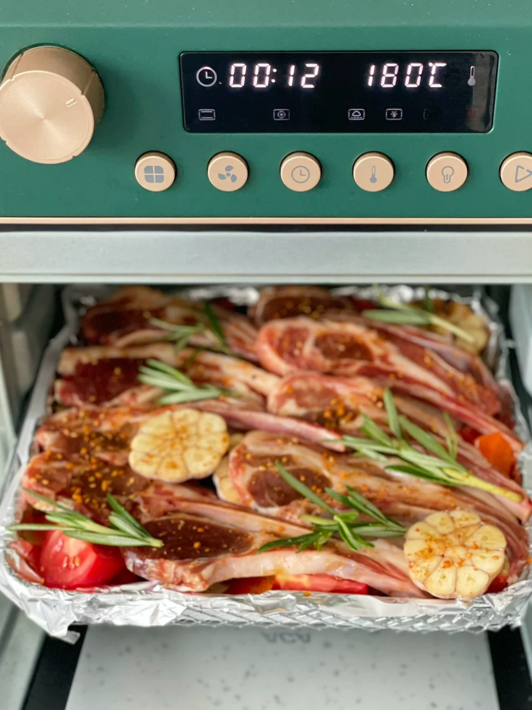 6️⃣烤箱180度烤12分钟,羊排翻面再烤6分钟即可