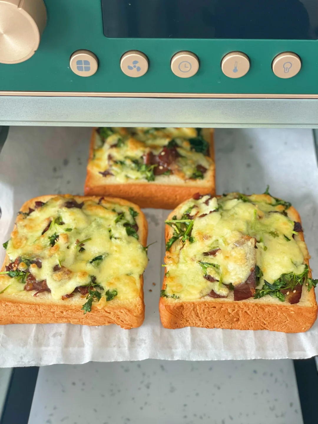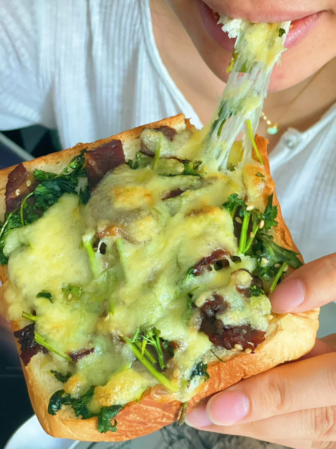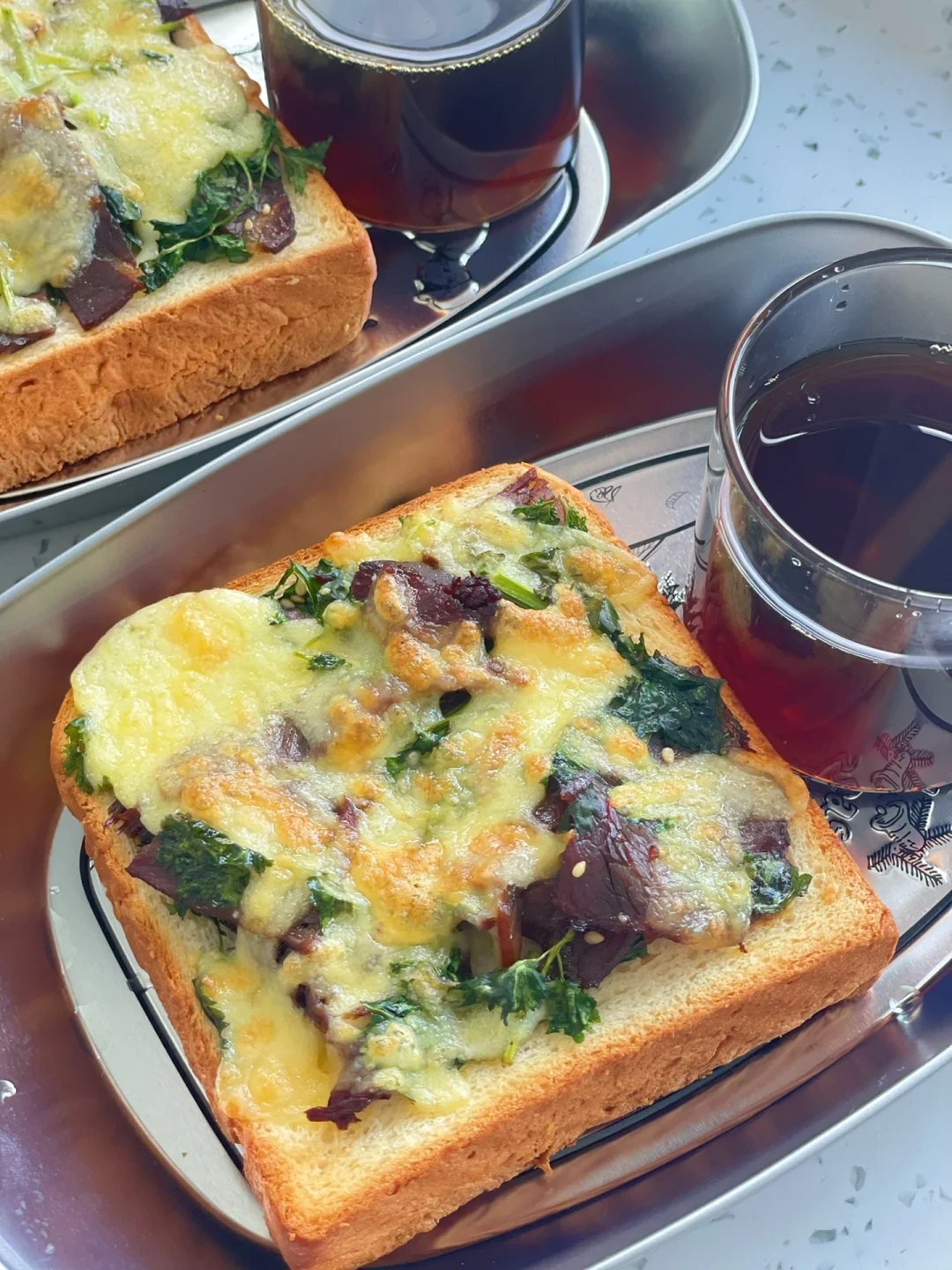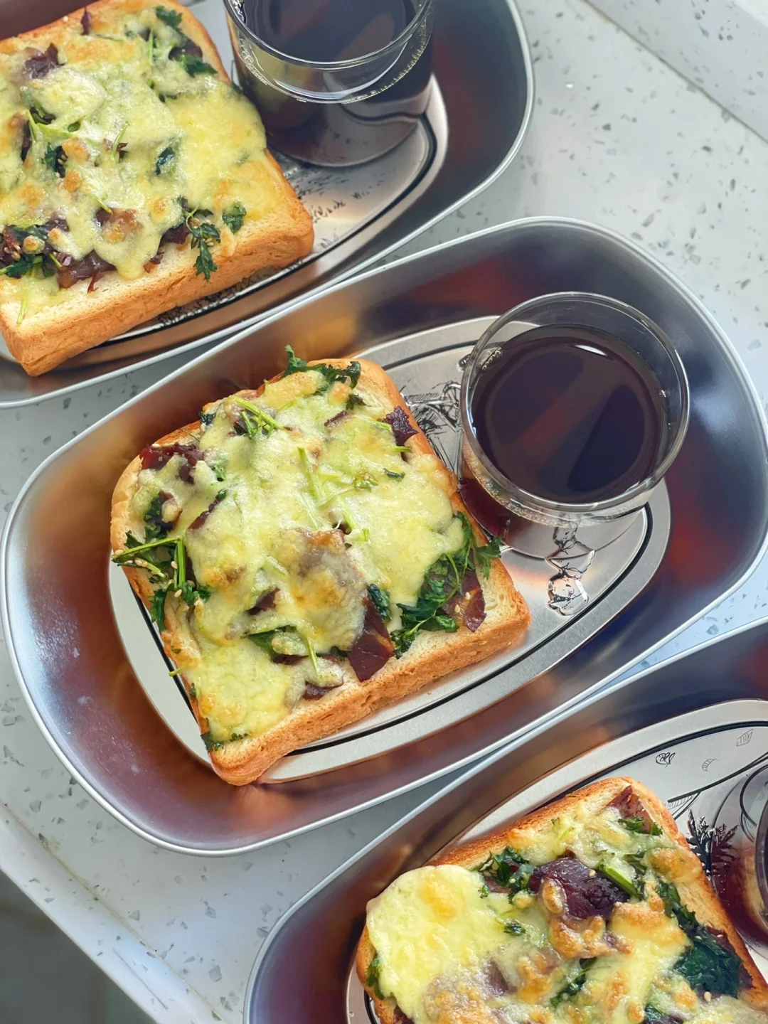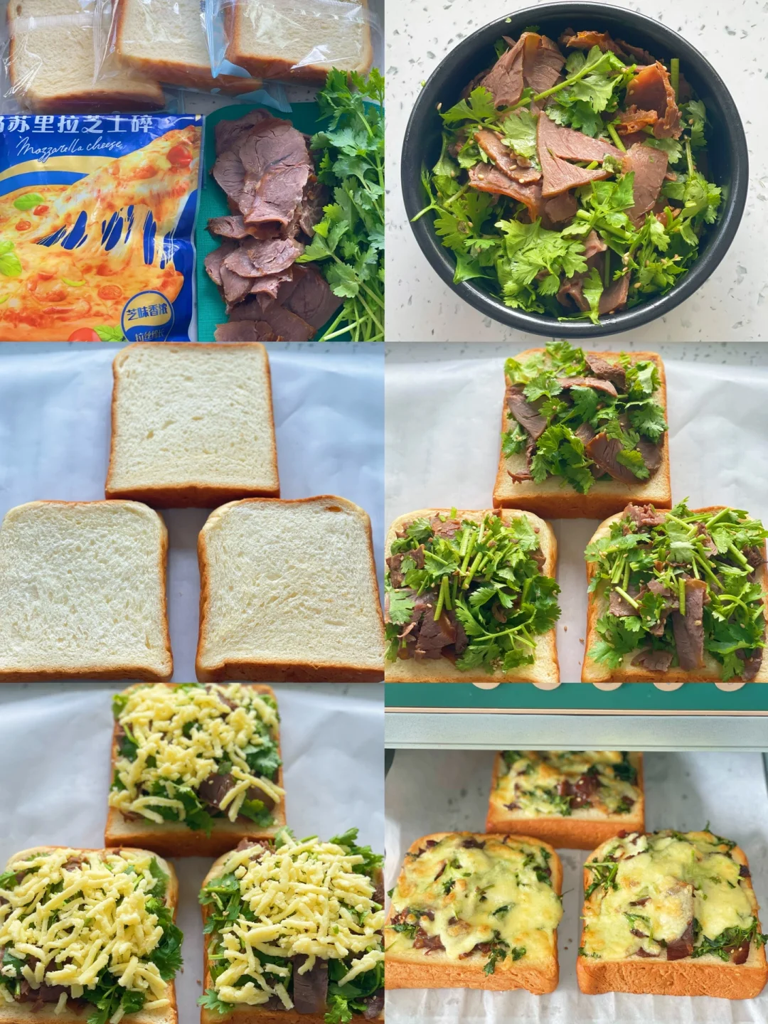 夏日早餐盘 今天吃的是一份早午餐,喜欢香菜的留下,不喜欢的可以直接划走[偷笑R] 🌟香菜牛肉烤吐司 卤牛肉片|香菜|吐司|芝麻油|白芝麻|马苏里拉芝士 1️⃣牛肉片、香菜、芝麻油、白芝麻拌匀 2️⃣铺在吐司上,再撒上芝士碎 3️⃣烤箱170度烤10分钟,芝士融化,吐司边角烤脆 ❤️香菜牛肉放在啊吐司上真的很搭,再配上拉丝的芝士,香脆的面包。真的不要太好吃[偷笑R][偷笑R] 🌟以为吃起来会腻,搭配了美式☕️。但是这个吐司真的是一点不腻哦。喜欢吃香菜的可以做起来