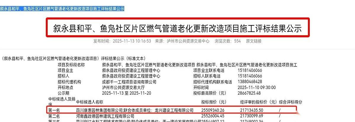 泸州这事儿,有点意思。 一个快三千万的燃气管道改造工程,第一名都选出来了,结果俩
