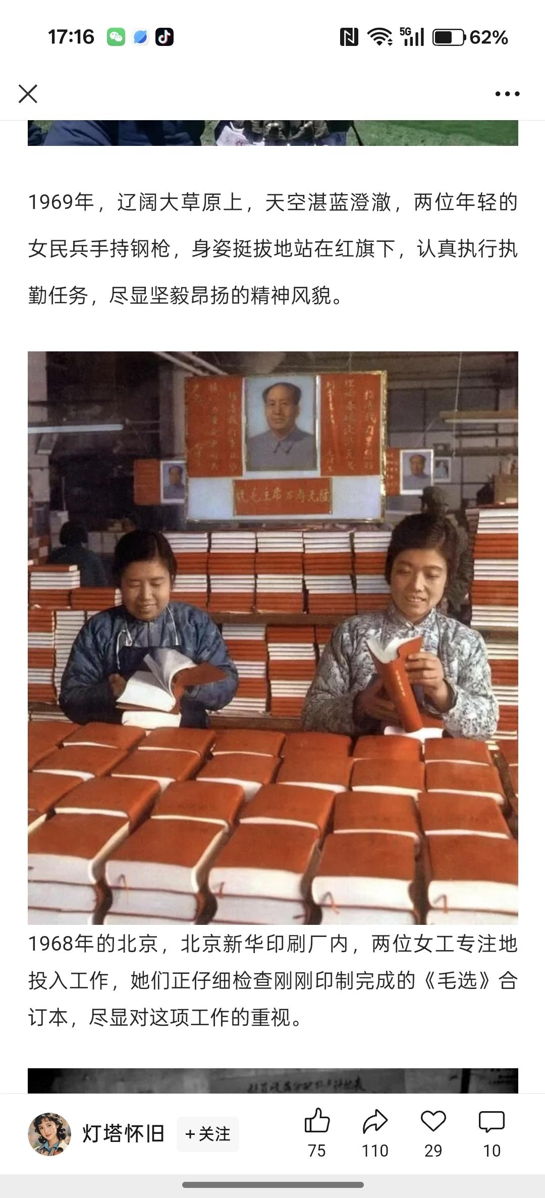 晒晒那些年的老照片1968年,北京新华印刷厂新印出一批毛选合订本,工人们正在抽样检测质量。