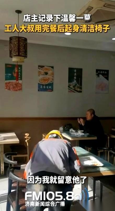 他抽了张纸巾。 我以为他要擦嘴,结果他弯下腰,把自己刚坐过的椅子,仔仔细细擦了一遍。 就因为,他刚从工地上下来,怕自己衣服上的灰,弄脏了下一个坐这儿的人。 说真的,这一幕比我看过一万句“名人名言”都有用。 什么叫教养? 这就是。 不是你穿什么牌子的衣服,不是你开什么价位的车,也不是你认识多少“大人物”。 是你在没人注意的角落里,心里还装着别人。 太多人了,活得光鲜亮丽,出入高级场所,留下一片狼藉的时候眼皮都不眨一下,觉得全世界都该为他服务。 反倒是这位一身尘土的大哥,靠力气挣着辛苦钱,却温柔地对待这个世界。 他弯腰擦掉的,是椅子上的灰。 但我觉得,他更像是在很多人心里蒙尘的地方,也轻轻擦了一下。 我们总在说,职业不分贵贱。 但心里呢?是不是下意识就给人贴了标签? 这个大哥没说话,一个动作,就打了所有偏见的脸。 真正的体面,是刻在骨子里的,跟衣服、身份、钱,半毛钱关系都没有。 就是一个陌生人,一个不经意的动作,突然让你觉得,这世界还挺好的。