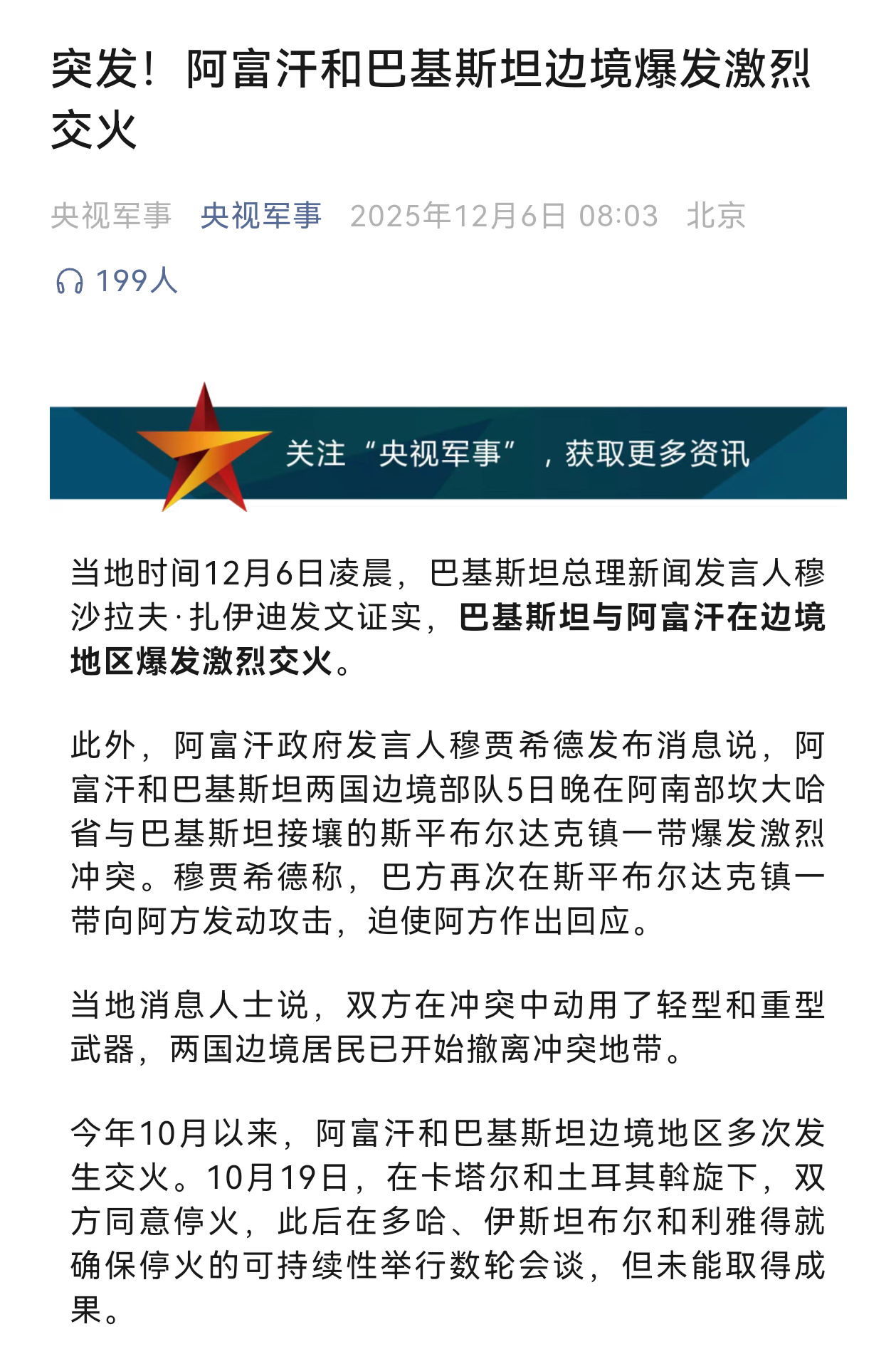 阿富汗和巴基斯坦边境爆发激烈交火。烽火问鼎计划热点观点