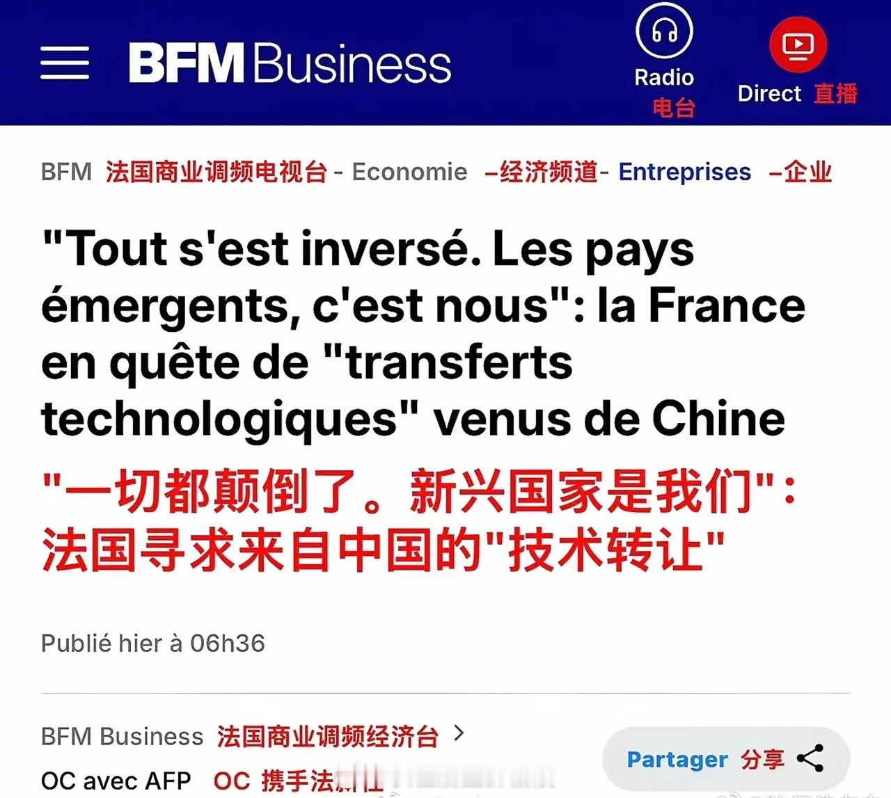 马克龙访华法国媒体:“一切都颠倒了,新兴国家是我们!”马克龙这次的访华行程,其重要目标之一是说服北京增加在法投资,以期借鉴中国技术并助力本国工业实现赶超。法媒表示,“经过 30 年的全球化进程,中国在经济增长和创新方面实现重大飞跃...如今中国拥有诸多尖端技术,可以与值得信赖的合作伙伴特别是欧洲伙伴共享。”承认差距,认清现实,加强合作,法国人还是清醒的。马克龙说此行只有一个遗憾