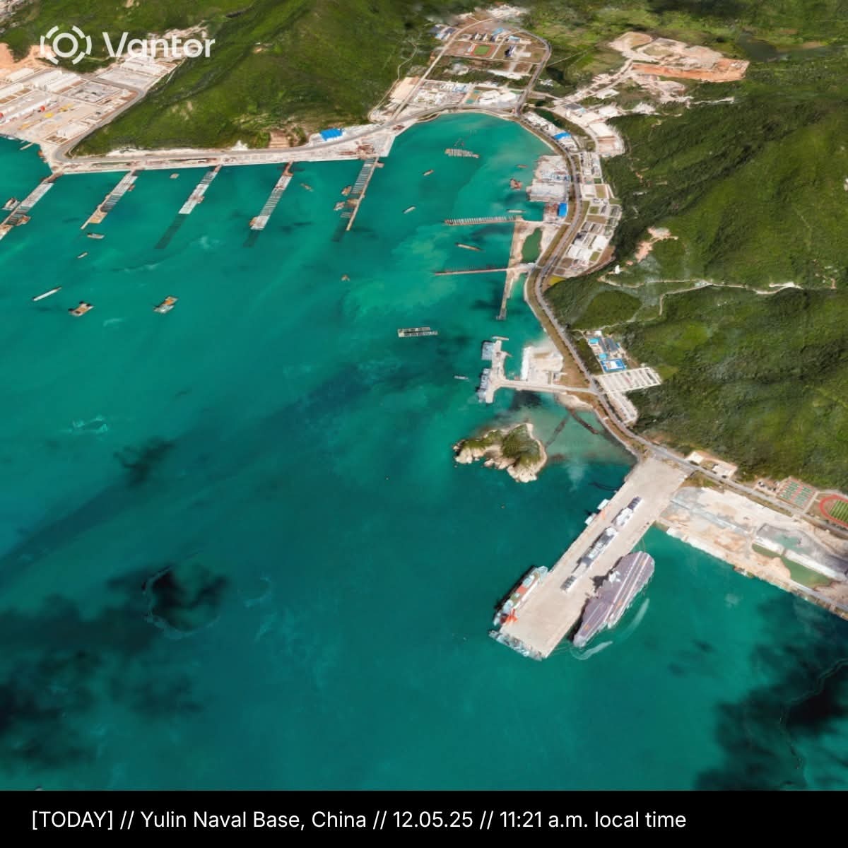 美国VANTOR公司(原Maxar Intelligence)利用12月5日单次过顶卫星拍摄的中国榆林海军基地图片,花费十小时处理生成了高分辨率三维地形图像,可以实现完整 3D 探索。可以达到 50 厘米分辨率和不大于 4 米的空间精度。每天认识一件兵器烽火问鼎计划 榆林海军基地位于南海北缘,被认为是中国最具战略意义的军事基地之一。在这张图像中,可以看到停泊在港内的福建号航空母舰,旁边有一艘巡逻艇经过。同时还能看到一个干船坞以及正在建设的新码头和栈桥。美军指挥系统和自主平台依赖该公司高精度的三维空间基础数据,将其作为作战地形的可靠地面实况。其快速的三维处理能力只需一次卫星过境即可更新该基础数据,使其与任务节奏保持同步。