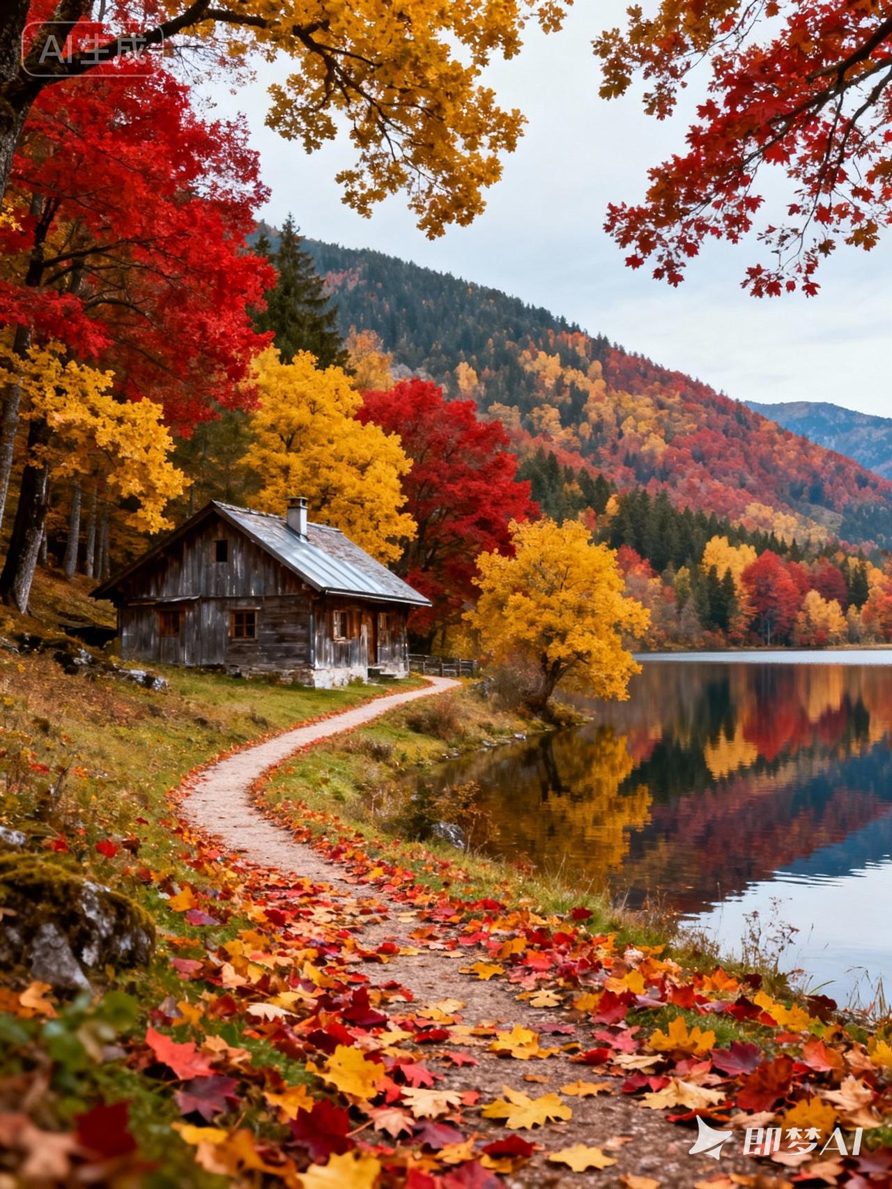 红枫的颜色与蓝天白云搭配,画面更加赏心悦目