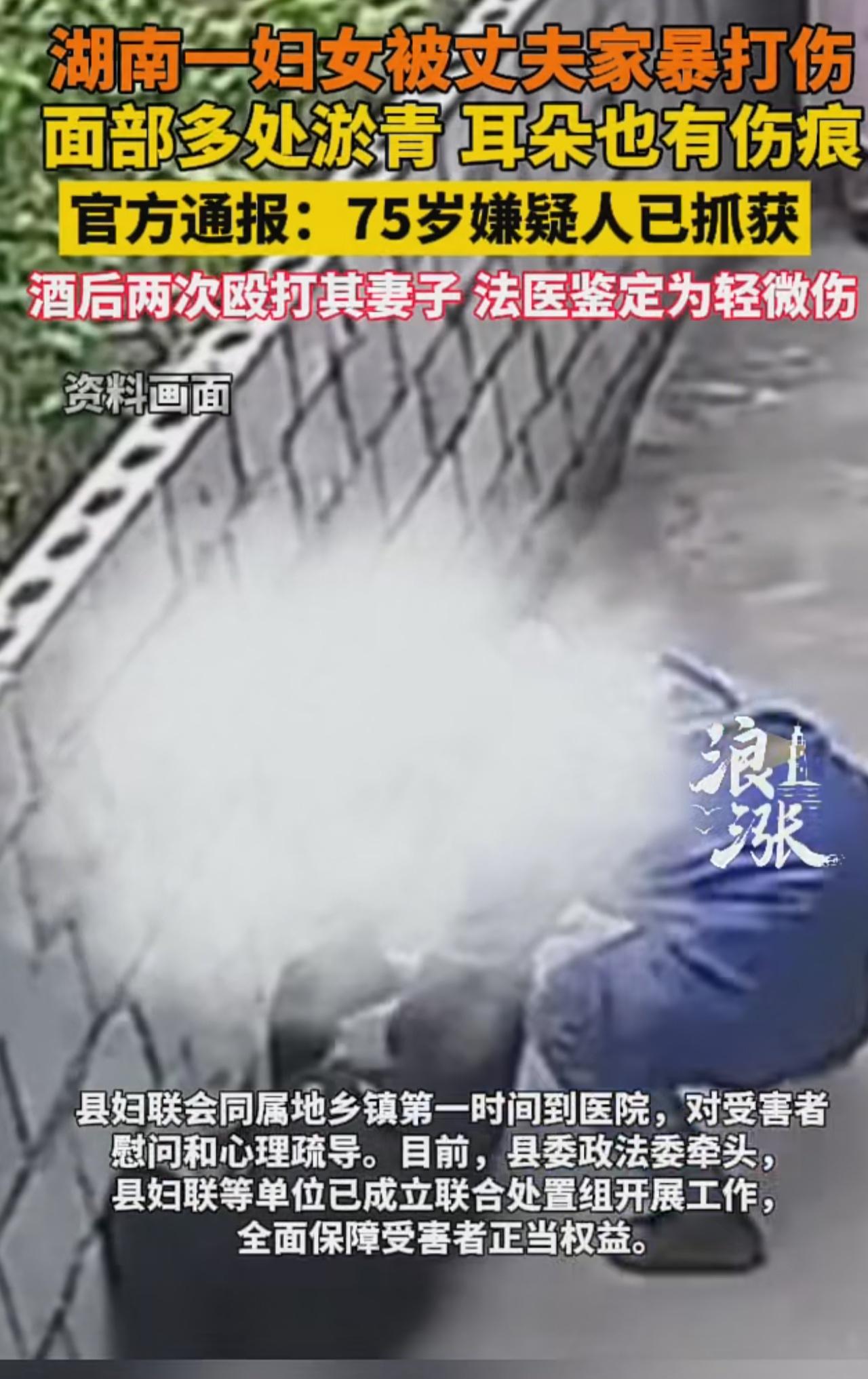 这老头75年真的是白活了,还家暴? 湖南一妇女被丈夫家暴打伤 面部多处淤青 耳朵也有伤痕 官方通报:75岁嫌疑人已抓获! 唉…这家暴都几十年了…她是怎么过来的… 但是这最后鉴定也只是轻微伤,看着很严重,毕竟老头年龄大了,没有多少力气,打人也就那样,但是要我说人的休养应该在不断进步,看透生活本质,这老头也就30年修养,其他几十年屁休养没提升,全在家暴中,人活成这样还得了,以后怎么教育孩子,怎么投胎富二代?