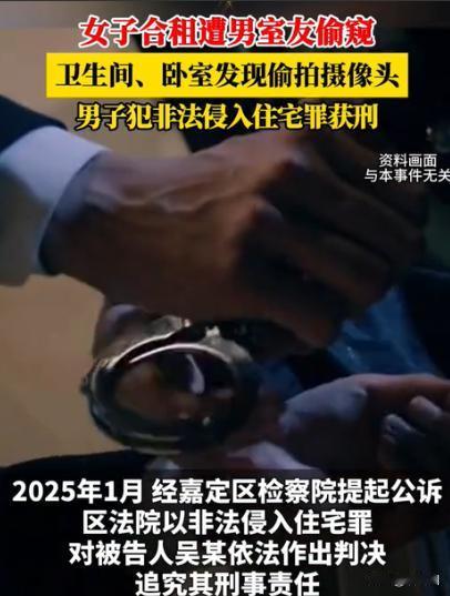 “脸都不要了!”上海嘉定一男子与女室友合租,竟动了歪心思。趁其外出时,多次潜入她房间安装微型摄像头偷窥,时间长达一个多月。令人发指的是,他后来觉得“不够刺激”,又将摄像头转移安装到了两人共用的卫生间里,次日被发现后法院判决亮了! 吴某和张某合租的小区是一栋建成十多年的老房,两人所住的是一套两室一厅,房型不大,却也足够两名普通上班族暂时栖身。 吴某三十出头,看似正常,但长期沉迷于网络上一些灰色内容,内心被扭曲的欲望支配着。 他第一次见到张某,就被她清秀干净的样子所吸引。可他明白,两人只是合租关系,他根本没有机会接近对方。 某天,张某把备用钥匙装在小鞋盒里,放在自己卧室门口角落。那是她为了应对忘带钥匙时备用的。吴某注意到那只鞋盒已经好几天都摆在那儿,张某似乎也从不留意。 那天深夜,屋里只有他的房门亮着一盏昏黄的灯。吴某盯着那只鞋盒,看了许久,内心的防线被一点点侵蚀。 他悄悄打开自己的房门,轻手轻脚走到张某卧室门口,盯着鞋盒中的小银色钥匙。 犹豫了一秒,他还是伸手取走了。 那一瞬间,他的心怦怦直跳,却又伴随一种扭曲的兴奋。 张某的卧室里摆设简单:一张床、一张书桌、一个小衣柜,白色窗帘被风轻轻吹动。吴某第一次潜入她房间,只想“看看”。他假装冷静,却因为紧张,手心已满是汗。 看着女孩井井有条的生活痕迹,他心里的欲望不断膨胀。那天起,他脑中闪过一个念头——安装摄像头。 他在网上购买了一个只有指甲盖大小的迷你摄像头,可以远程查看、自动保存。他资料准备得异常细致,甚至提前测试了角度与光线。 一个周末下午,张某出门和朋友聚餐。吴某守在门口听到关门声后,立即进入她的房间。他小心翼翼地在书桌上的小摆件后面藏好了摄像头,然后调整角度,确保能拍到卧室的大部分区域。 安装好那一刻,他觉得自己像完成了一件极其“高明”的事,内心竟泛起一种病态的满足。 从那天起,吴某几乎每天都要查看录像。他看到张某回家、换衣服、疲惫地倒在床上、早晨匆匆整理发型的样子。他知道这些画面不该属于他,但他沉迷其中,无法自拔。 随着时间的推移,吴某觉得卧室的画面已无法满足他那扭曲的好奇心。 他开始想要“更刺激”的内容。每当张某洗澡时,卫生间传出水声,他就坐在房间里,心跳加速,脑海里不断浮现不该有的画面。 终于,一天晚上,他决定把摄像头转移到卫生间。 那天张某加班到很晚。吴某在卫生间里装作打扫卫生,趁机把摄像头藏在靠近洗漱台的一处缝隙里,伪装得几乎难以察觉。 他一边安装,一边幻想着接下来会看到的画面,脸上露出诡异的笑。 第二天早上,张某准备洗漱时发现洗漱台下某块面板竟微微翘起。她好奇弯下腰查看,结果在阴影处看到了一点反光的黑色小点。 她愣住了。 她小心取出那个小装置,越看越觉得不对劲。意识到这是什么之后,她只觉得脑袋“嗡”地一声,全身发冷。 “这是……摄像头?” 她的手开始发抖。想到有人可能偷看了自己一个多月,她几乎要崩溃。 她第一反应就是走到吴某房门前,猛地敲门。 “吴某!你给我出来!” 门打开的那一刻,张某已经气到浑身发抖,胸口剧烈起伏。 “是不是你干的?你还有没有一点人性?不要脸!” 吴某被质问得措手不及,一时间支支吾吾,不敢抬头。 张某强忍着哭意,大声说:“我报警!” 她转身就拨了110。 警察到达后,迅速对房间进行了搜查。吴某很快被带到客厅接受询问,但不久,他的手机就被发现有异常。 侦查人员当场在吴某的手机里找到配套的监控软件,里面存着大量从张某卧室、卫生间拍摄的录像。时间之长、数量之多,让张某看得心惊胆战。 吴某面色惨白,想辩解却完全无话可说。 张某当场情绪失控,泪水不停往下流:“你怎么可以这样对我?我们每天一起住,你怎么能这么恶心?” 那一刻,整个房间的空气都凝固了。 吴某被当场带走。 案件很快进入司法程序。吴某的行为已构成非法侵入他人隐私、安装窥淫设备等违法行为,情节恶劣。法院最终判决吴某:构成侵犯隐私罪,拘役数月,并处罚金,没收所有违法设备与视频资料。