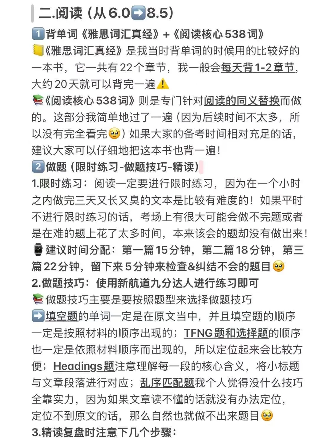 1.背单词《雅思词汇真经》+《阅读核心538词》