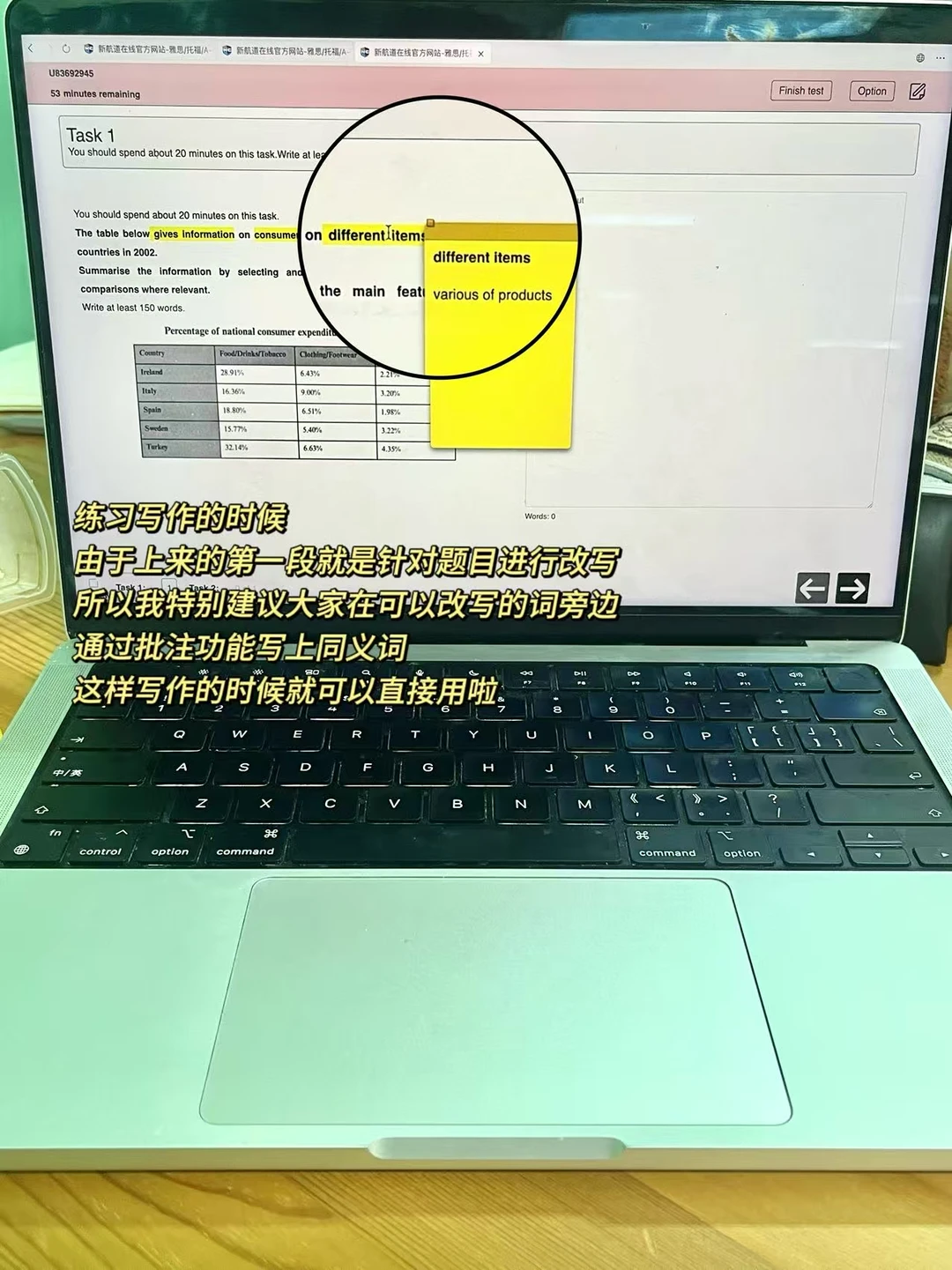 🔗由于大作文小作文上来的第一段都要求我们“合理地改写标题”,即灵活地进行同义词替换。练习写作的时候,可以将题目当中可以进行同义词替换的词进行标记,写下可以替换它的词组,这样在写作文的时候就可以直接用到了!这也是我喜欢机考的原因之一🥰