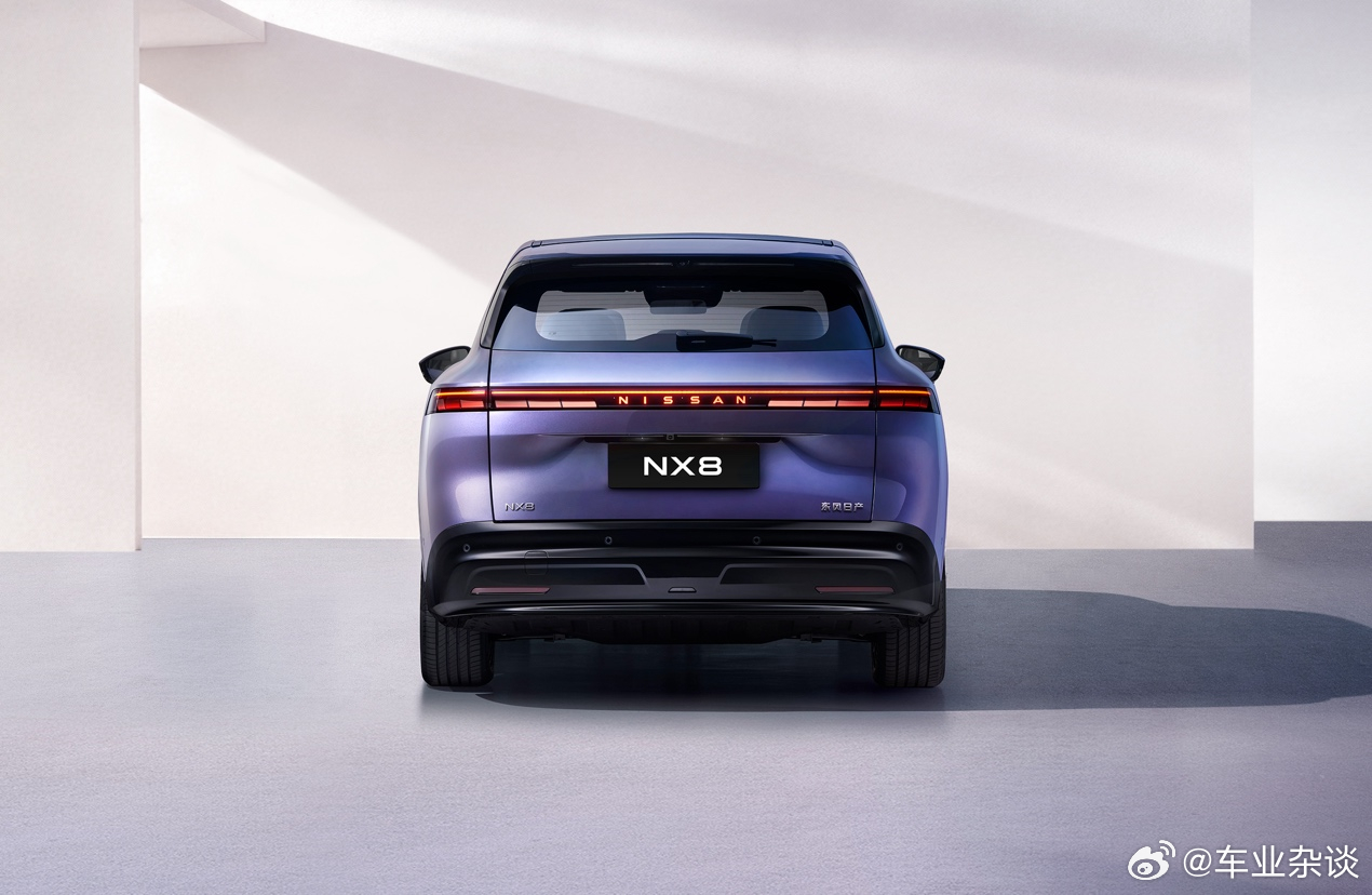 怎样才算合资新势力?近日,东风日产全新中大型SUV NX8公告图正式发布。新车定位中大型家庭SUV,首发搭载800V高压平台+宁德时代5C超充技术,将是首款搭载800V 5C超充技术的合资新能源SUV。据公告图披露信息,东风日产NX8尺寸为4870×1920×1680mm,轴距达2917mm。外观方面,新车沿袭日产家族V-motion设计语言,可见贯穿式星环灯;据悉,东风日产NX8还搭载全球最多2064颗OLED「量子光幕」尾灯,支持自定义灯语。辅助驾驶方面,东风日产NX8正式搭载激光雷达,在高速领航辅助NOA、城市领航辅助NOA、全场景智能辅助泊车。NX8的到来,将与纯电轿车N7、插混轿车N6等车型一起,打造更加完整的东风日产“新能源全家桶”产品矩阵——据悉,东风日产NX8将于2026年上半年正式亮相。NX8东风日产中大型新能源SUV