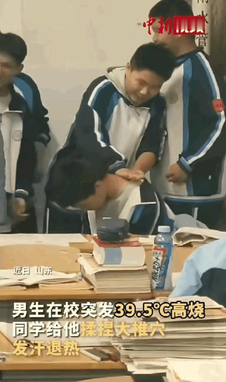 看哭了!山东,一男生在教室突然高烧39.5度,家长半小时才能到校,没想到,男生说奶奶教过搓大椎穴能退热,当即掀起同学后颈衣服,双手快速搓揉,另一名同学也跟着帮忙,这一幕将老师感动得泪流满面! 还是奶奶教的好!这才是传承的'真实写照!基础教育应该把中医的应急处理纳入孩子的选修,为中医营造传承的基因。 孩子们的精神可嘉!还要感谢那位奶奶传授的中医穴位按摩,所以说中医知识是非常珍贵的!同学间的互帮互助,能让大家在困难时感受到温暖依靠,这样互助友爱又有解决方法的孩子,是未来的希望! 善良的人天生的能善良!恶魔恶棍也是胎里带来的!良心它有就有,没有他就没有!这些孩子们肯定都是善良的有爱心有情有义的好孩子!